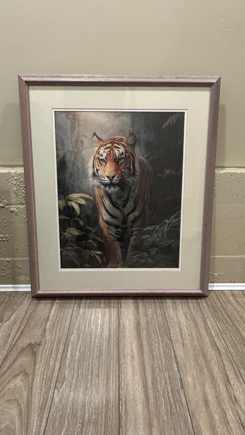 Large Framed Tiger Art Print. Pinkish hue frame . Super cool