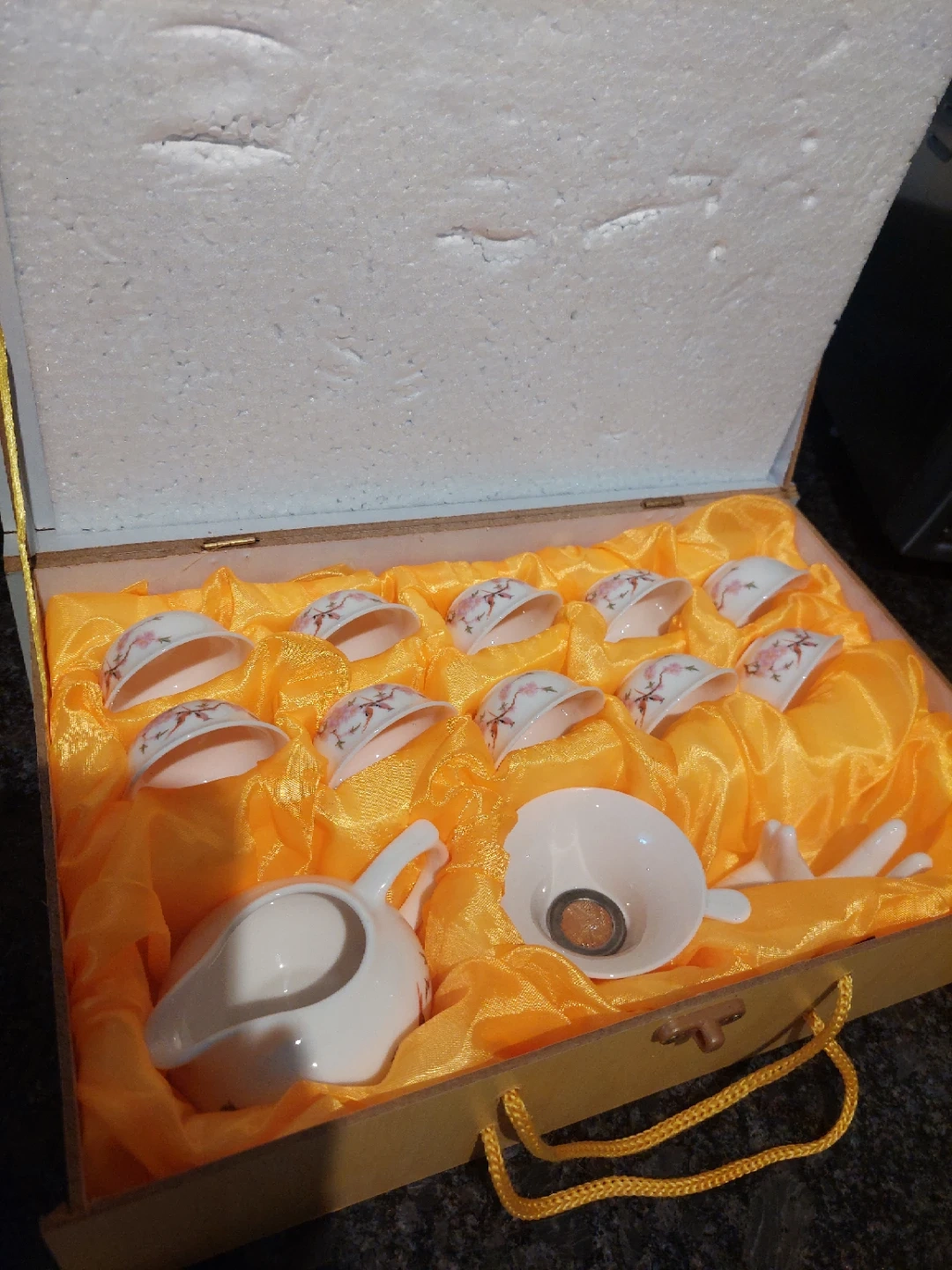Selling a Jing Pin Yu Ci tea set, complete with a wooden box for storage and display