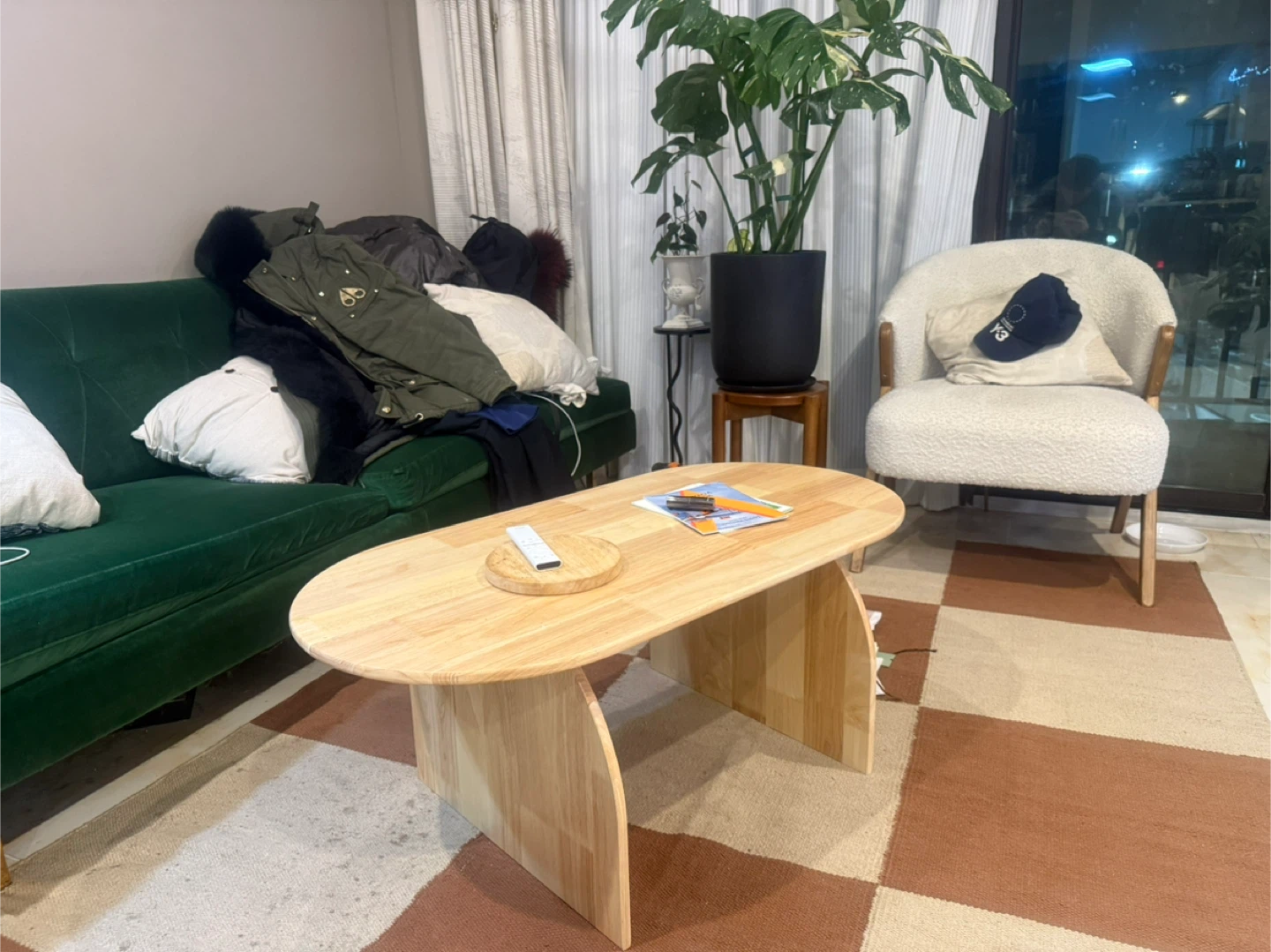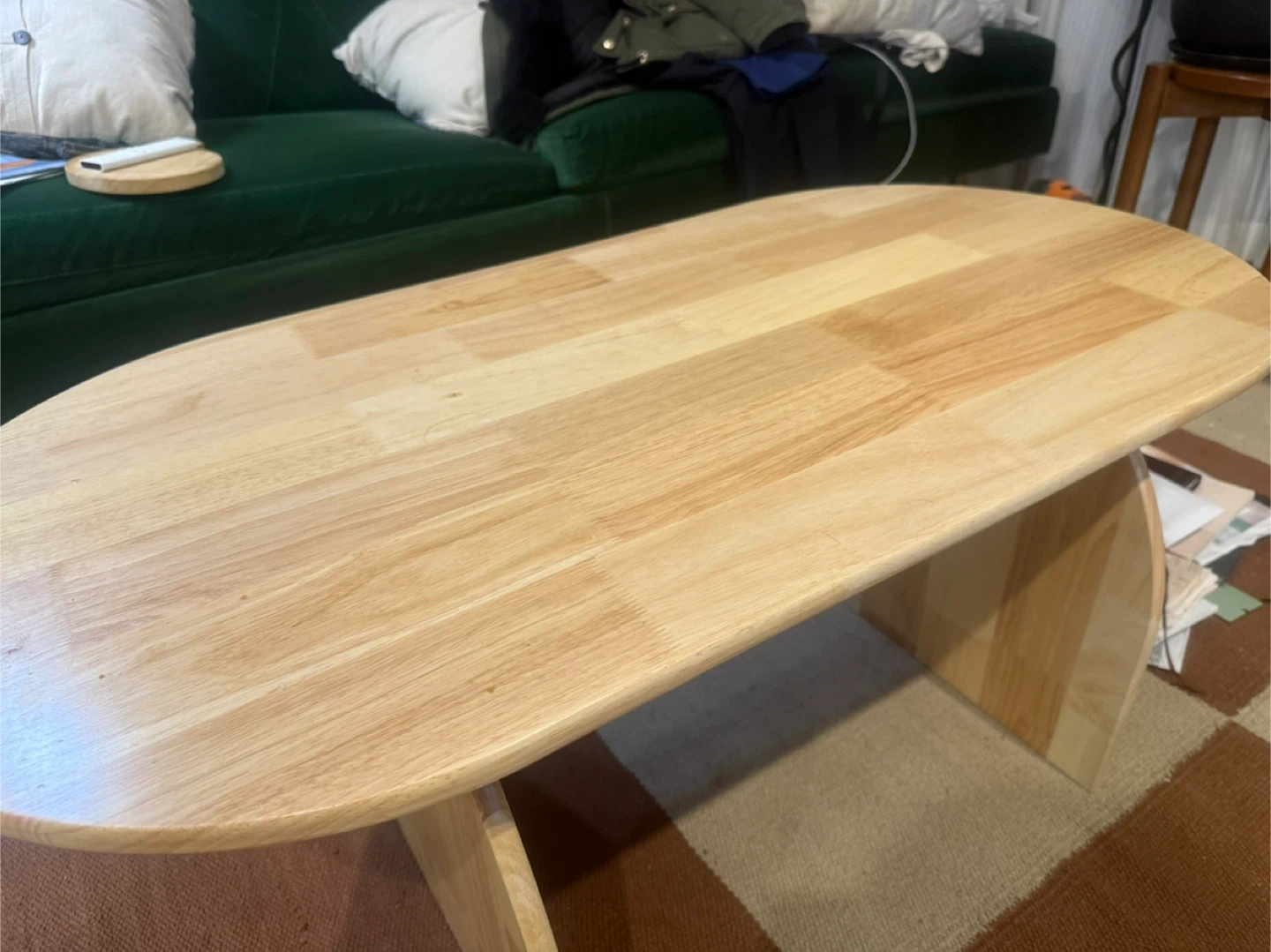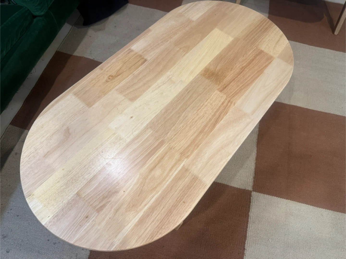Japandi style wooden oval coffee table. It's in great condition! The table is solid wood in oak color which is very neutral that would look great in any living room. Size: 39.5”W x 20”D x 16”H. Pick up from queens elmhurst.