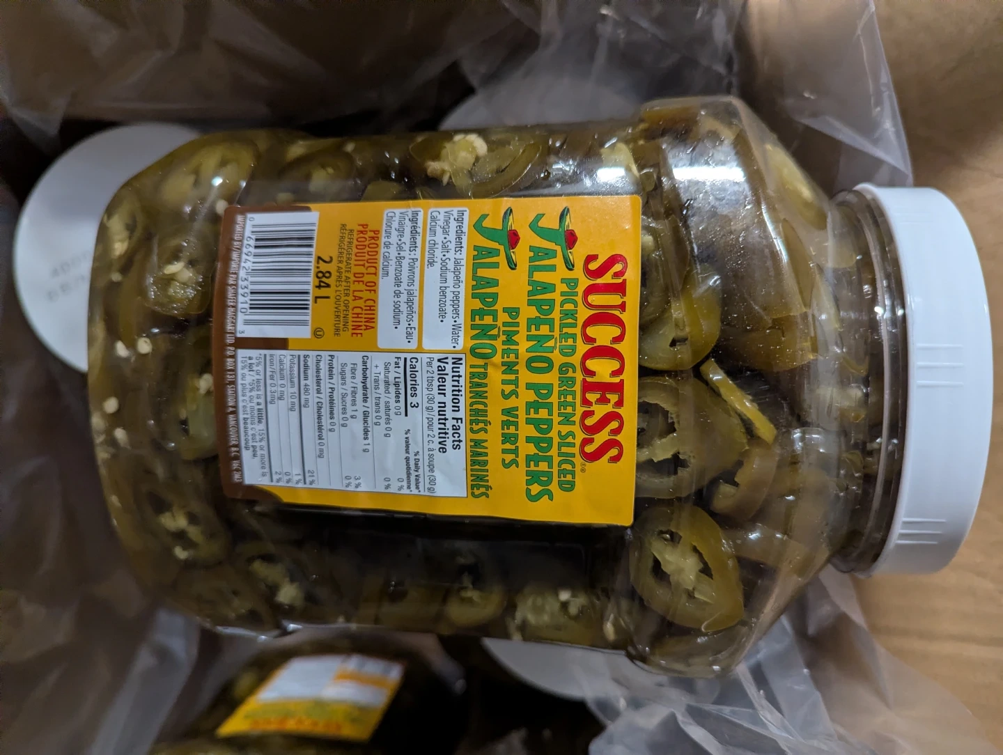 I have Success brand mixed red and yellow banana pepper slices and pickled green sliced jalapeno peppers.