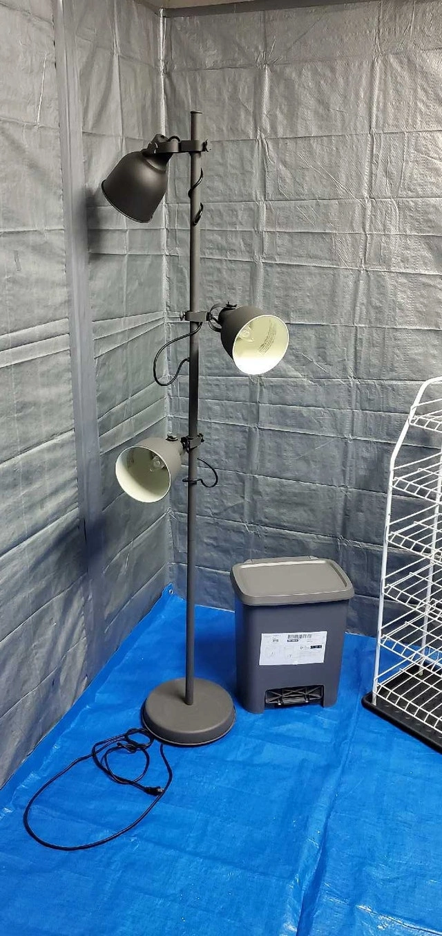 ▶️ Brighten up your space with this IKEA Hektar floor lamp, featuring three adjustable spotlights for targeted lighting. This is a used lamp, but it's still in great working condition and ready to illuminate your living room, bedroom, or office. The dark gray finish adds a modern touch to any decor.