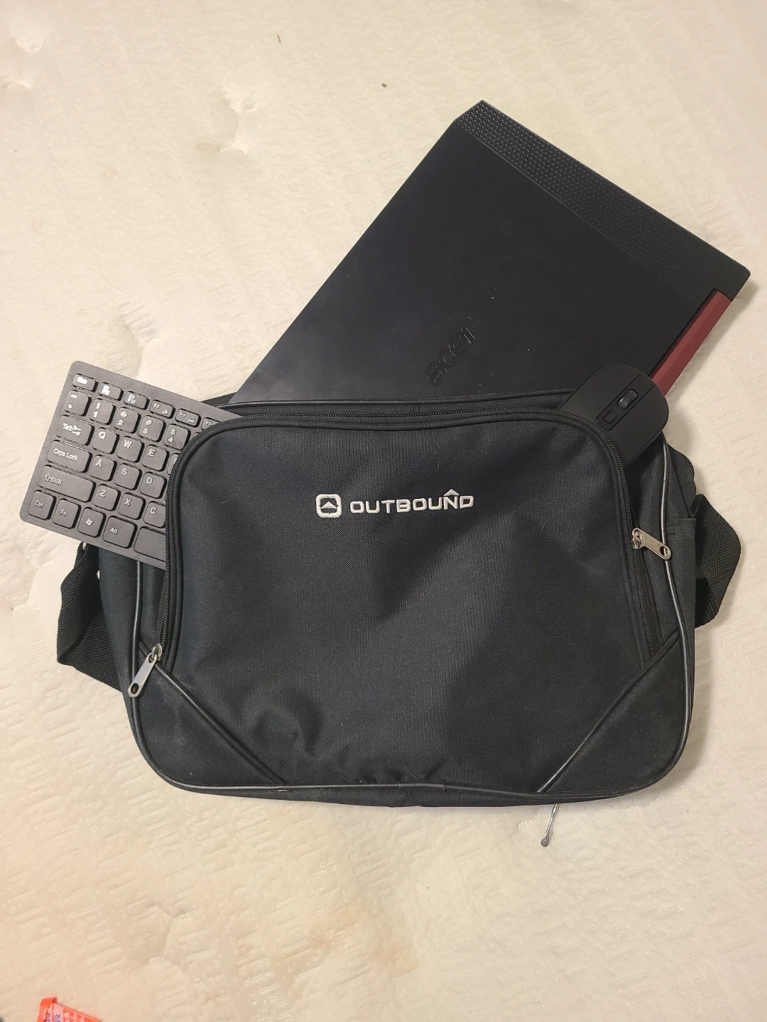 Selling an Acer Nitro 5 gaming laptop. It comes with an Outbound bag, perfect for carrying the laptop and accessories. Also included is a keyboard and mouse. Great for gaming on the go!