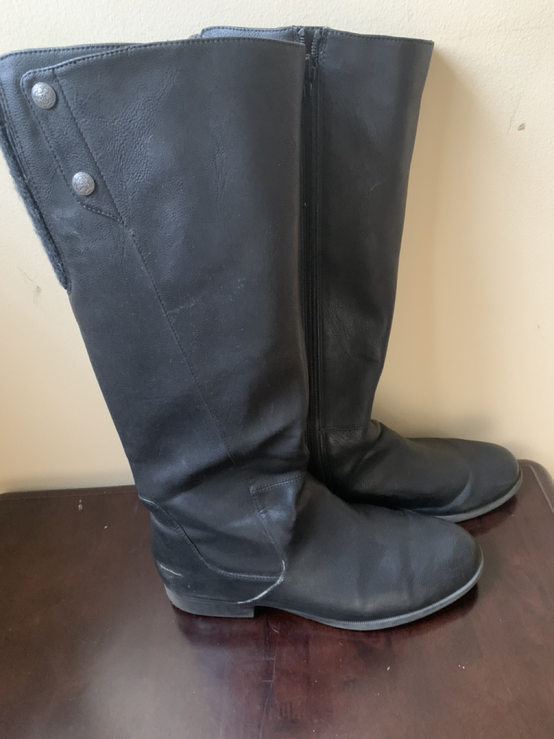 Hi, I’m giving away free size 8 ladies boots. The boot could be worn in winter or heavy rain. It’s water proof. It’s non leather with extra space for wider calves. Final sale non returnable. Msg me if interested.