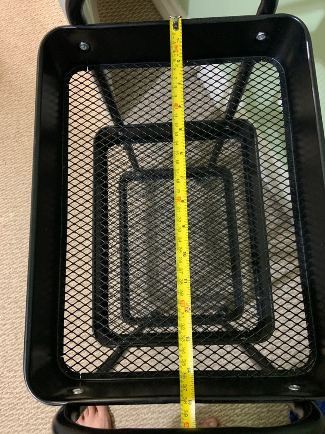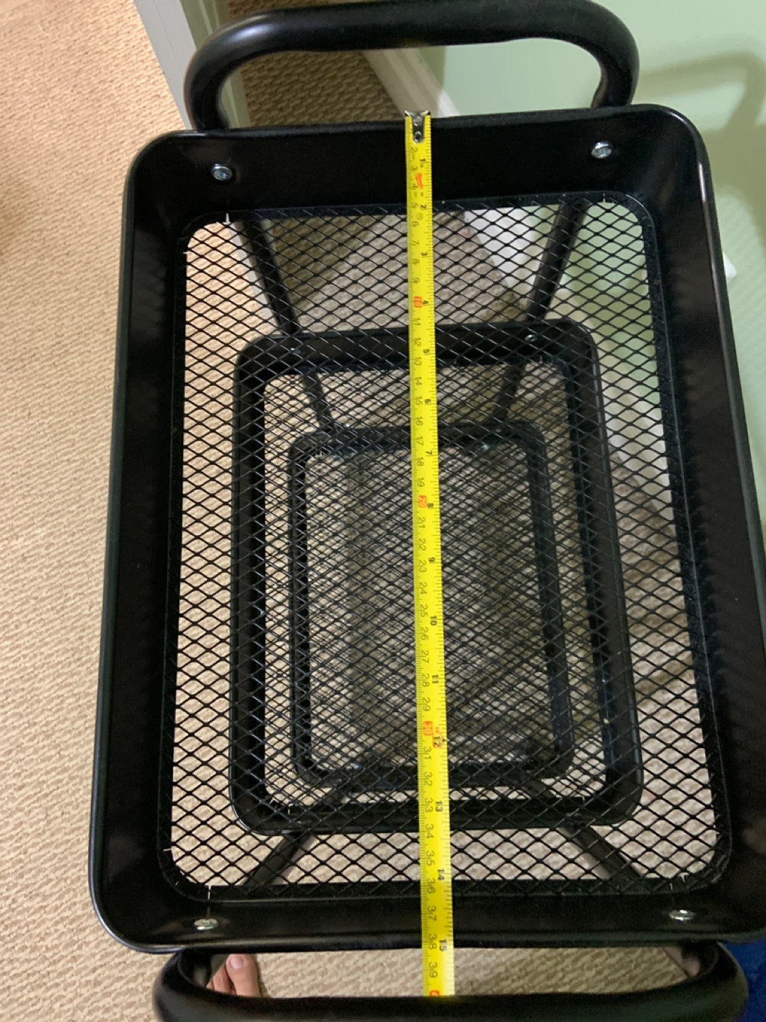 This black 3-tier rolling cart is perfect for adding some extra storage to any room! It's in great shape and ready to roll into your home. The cart measures approximately 39 inches in height and 37 inches in length.