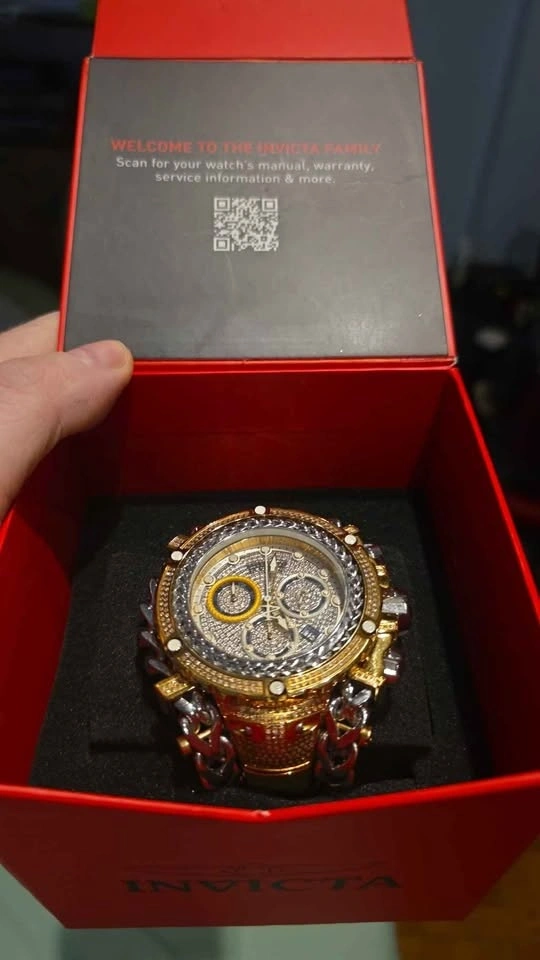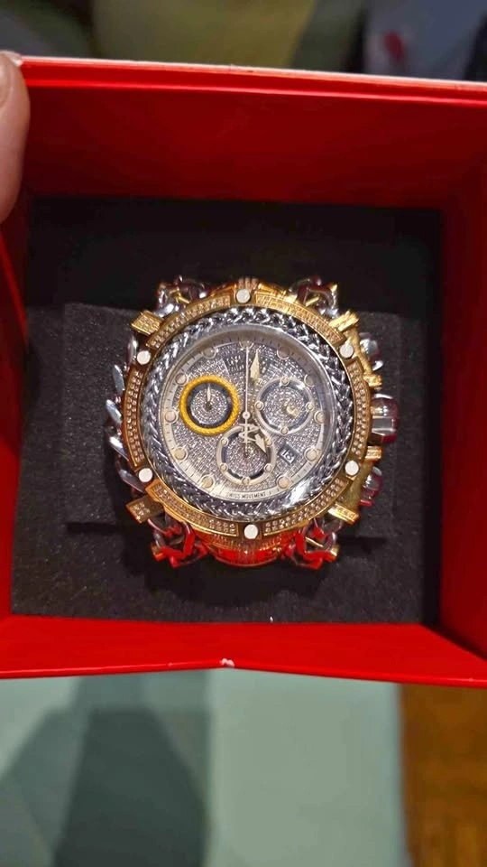 This is an Invicta Reserve Gladiator men's watch with a two-tone (gold and silver-tone) stainless steel case and bracelet, featuring 696 diamonds.