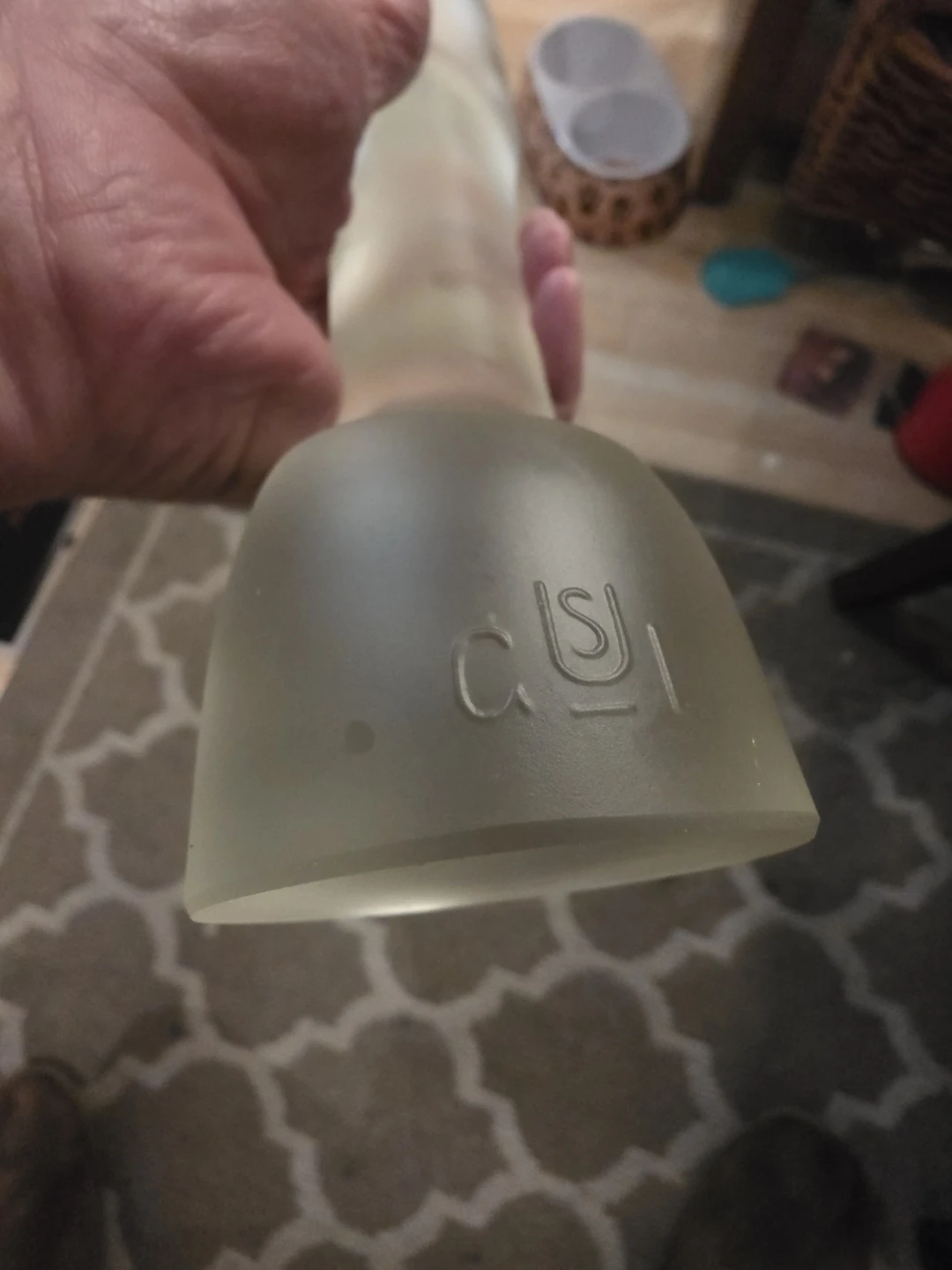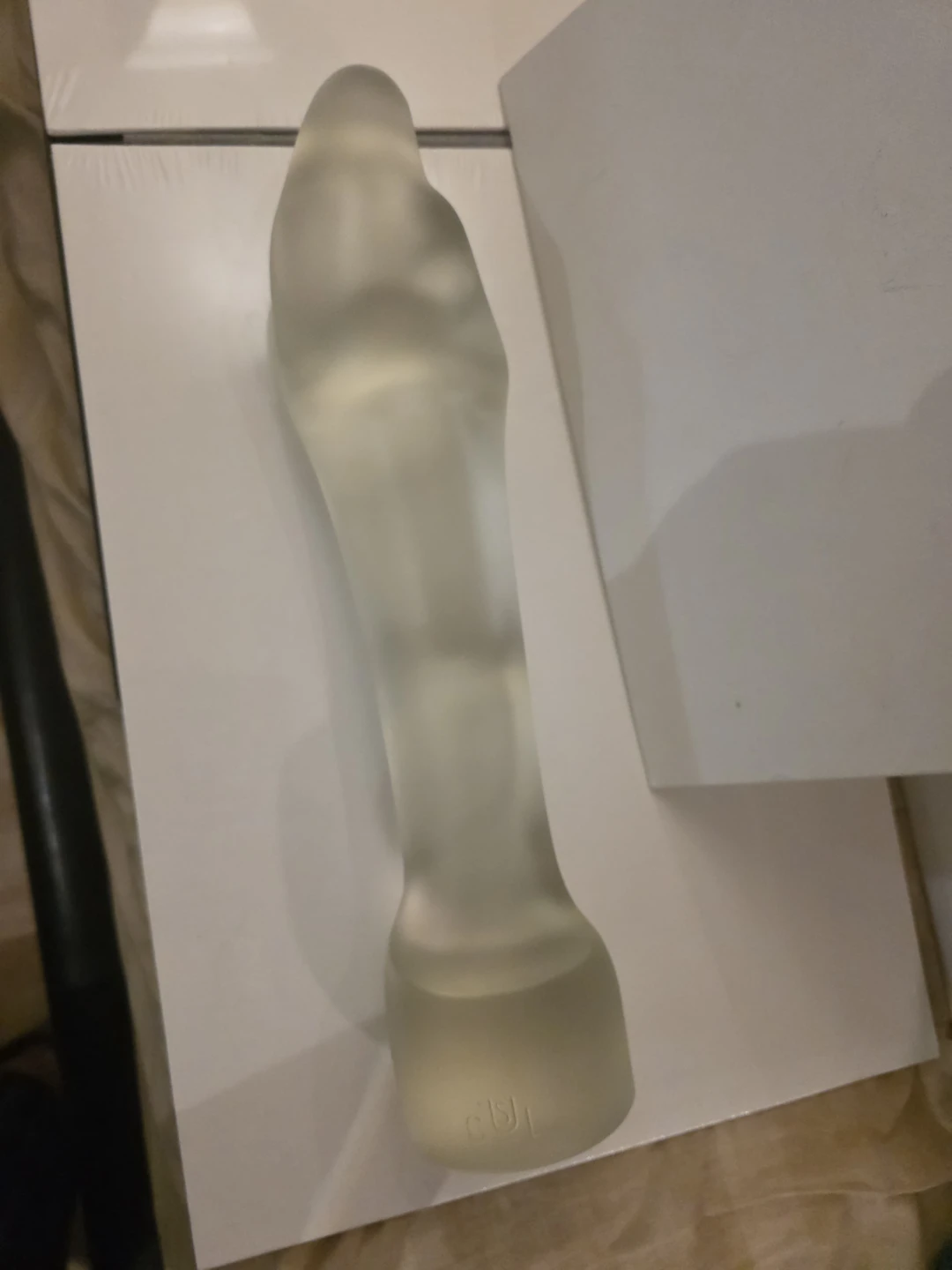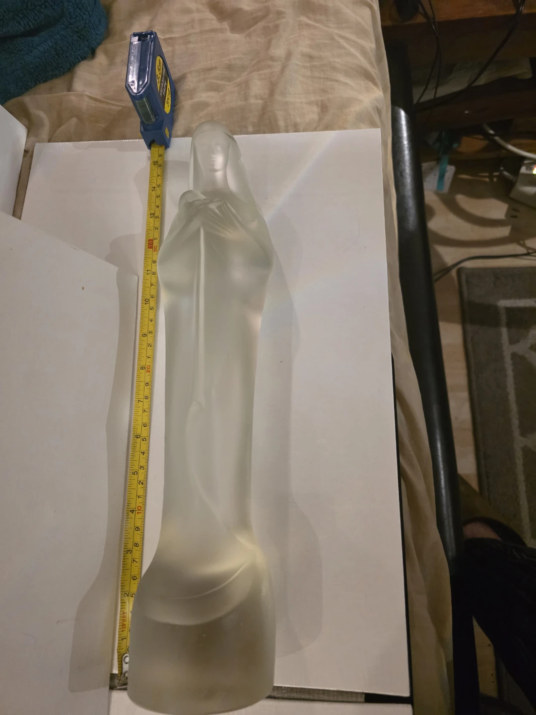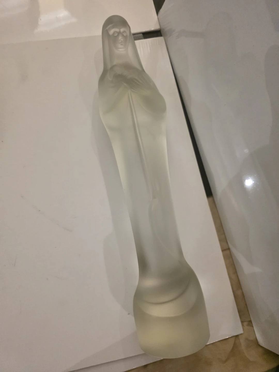 The figure is made of clear satin glass with a frosted finish.