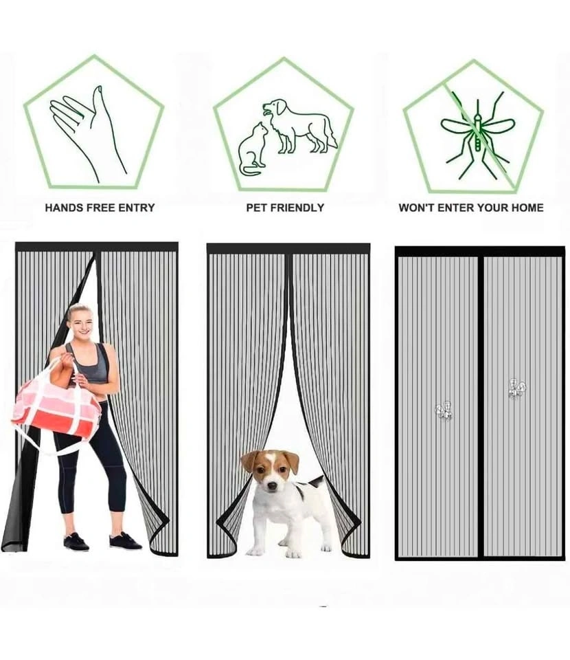 Black Magnetic Screen Door - Fit Door Size 72x80 Inch, Screen Size 74x82 Inch - Heavy Duty Mesh Full Frame With Magic Tape