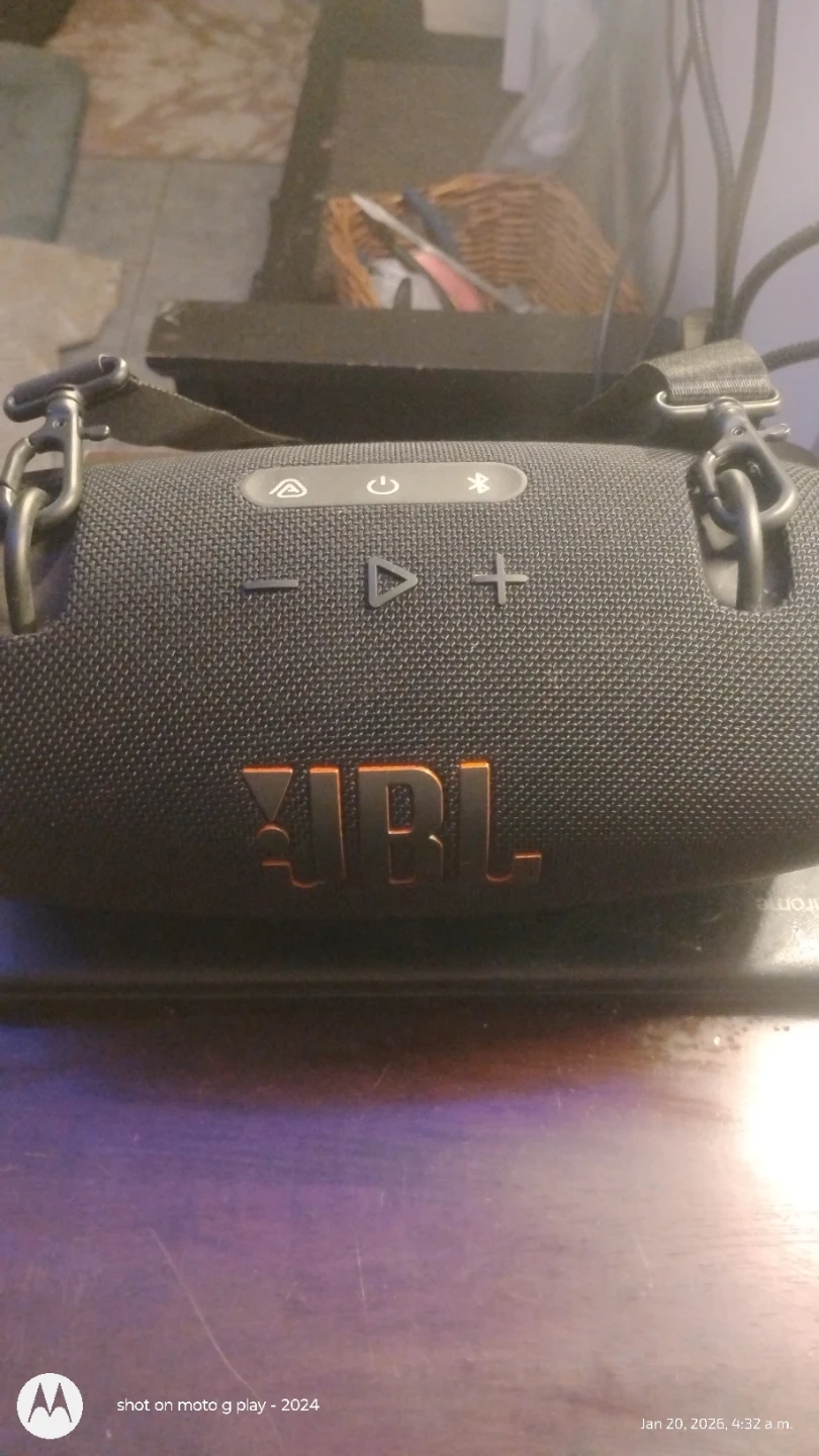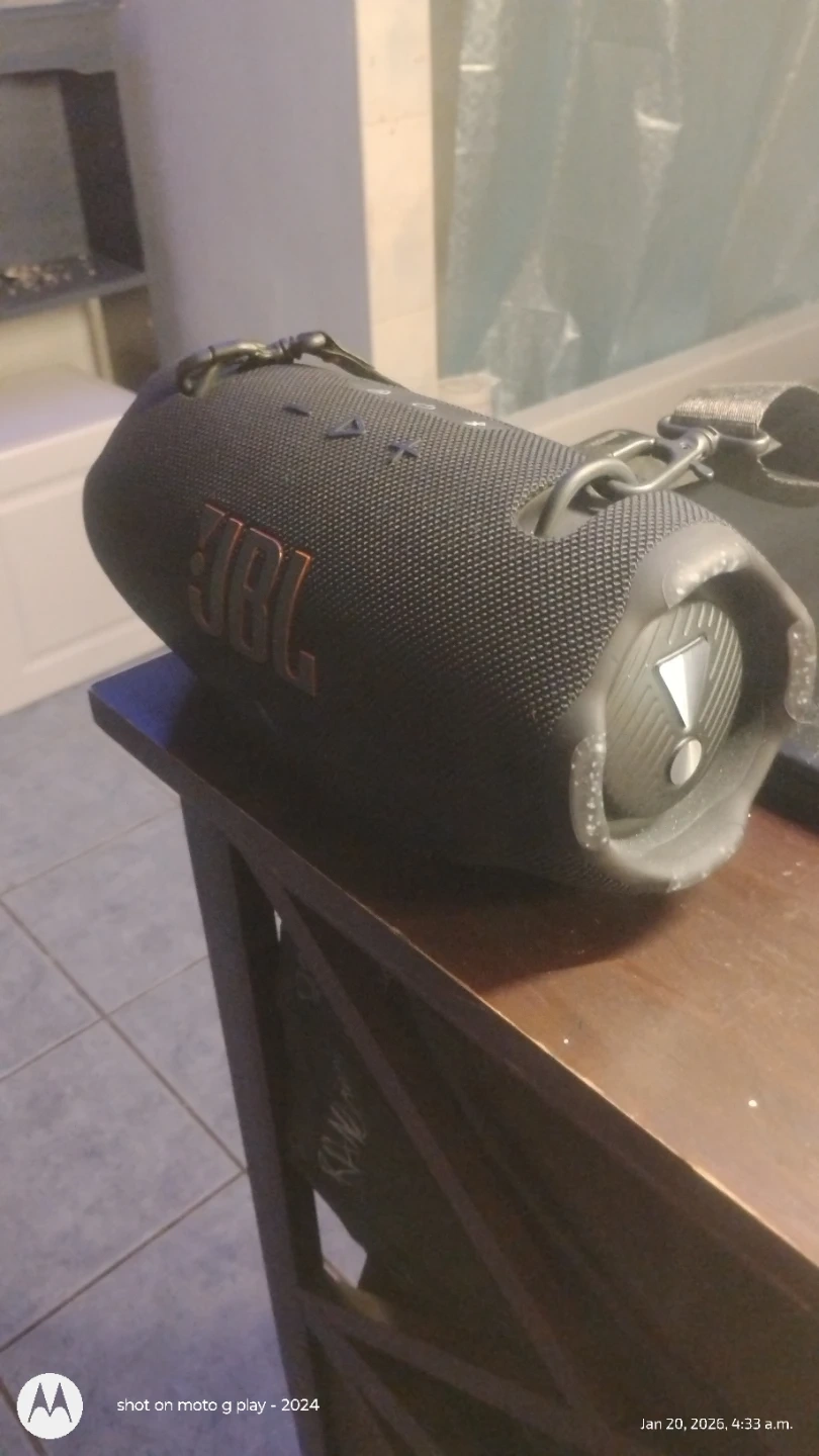 Selling a JBL Extreme 3 portable Bluetooth speaker in black. It's in good condition and ready to go! Enjoy great sound quality on the go with this rugged and waterproof speaker
