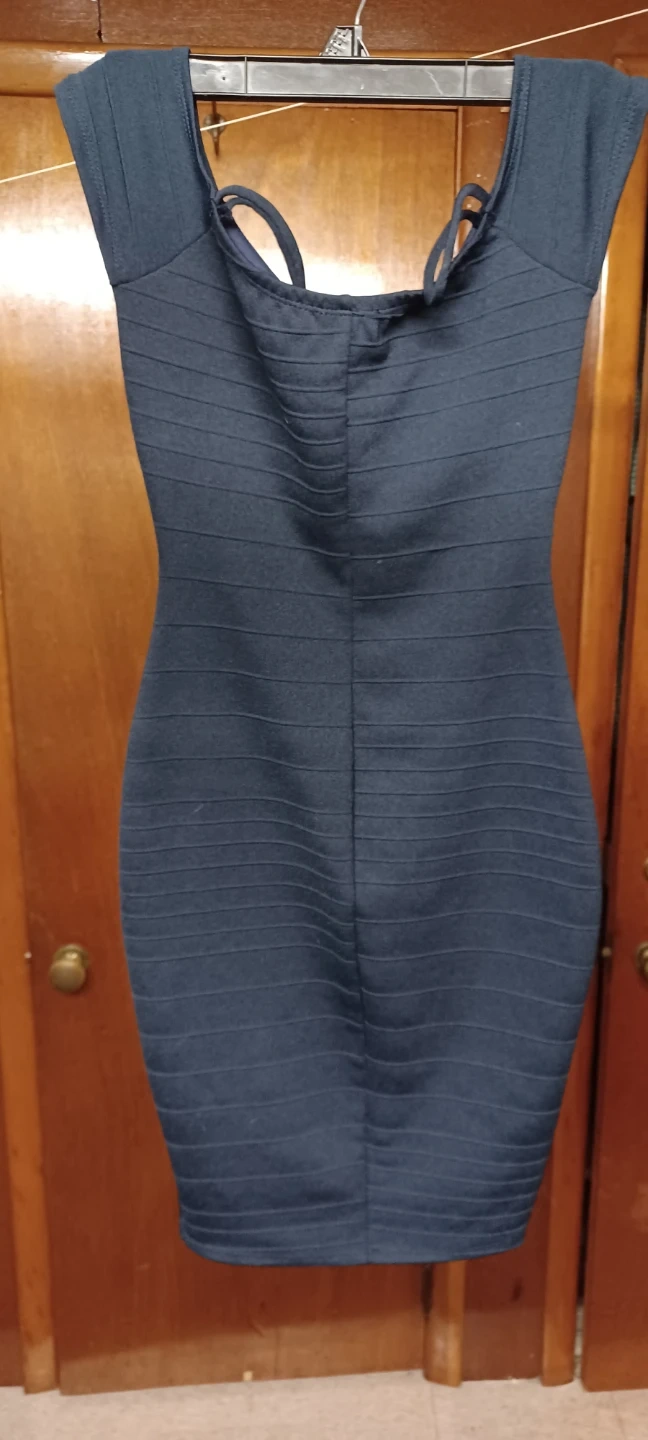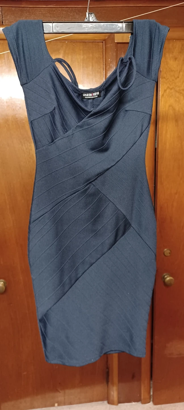 Selling a Fashion Nova blue dress. It features a V-neck and a fitted silhouette. Perfect for a night out or a special occasion! inside on the chest there is a softer material . You feel very nice in it, it's wonderful, comfortable, and very comfortable. I've only been to a short party once. But I'm selling it because I've gained a little weight, so I'm very disappointed. It's wonderful and comfortable. I'm writing as Peter sister. Best regards and I encourage you to buy the dresses. They were all mine, barely worn. Best regards to everyone.