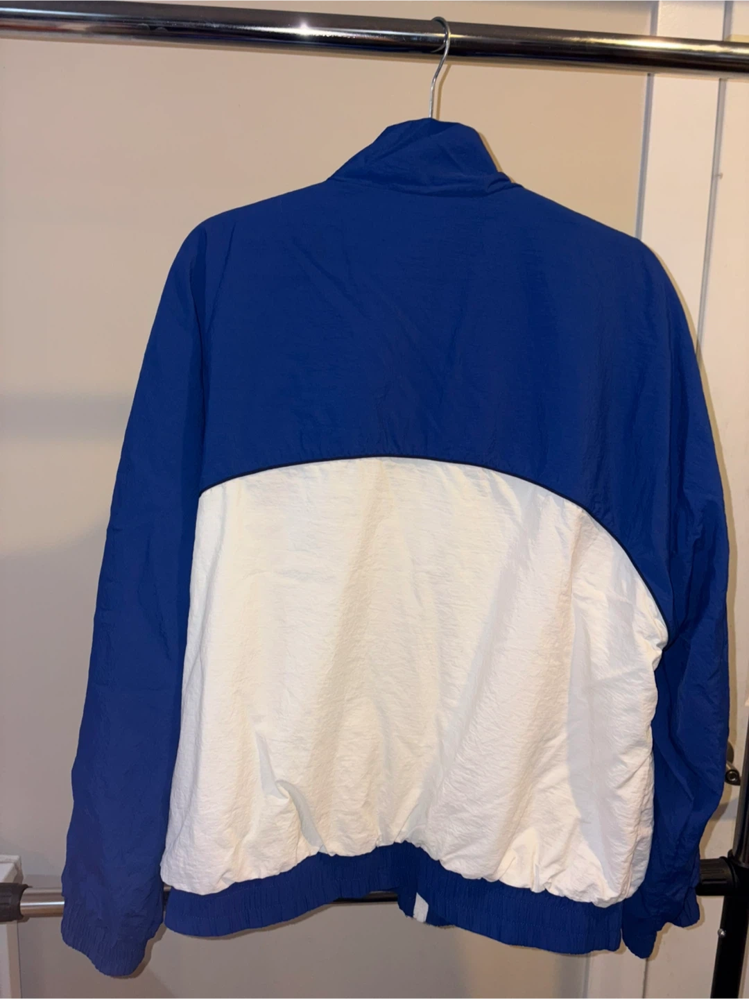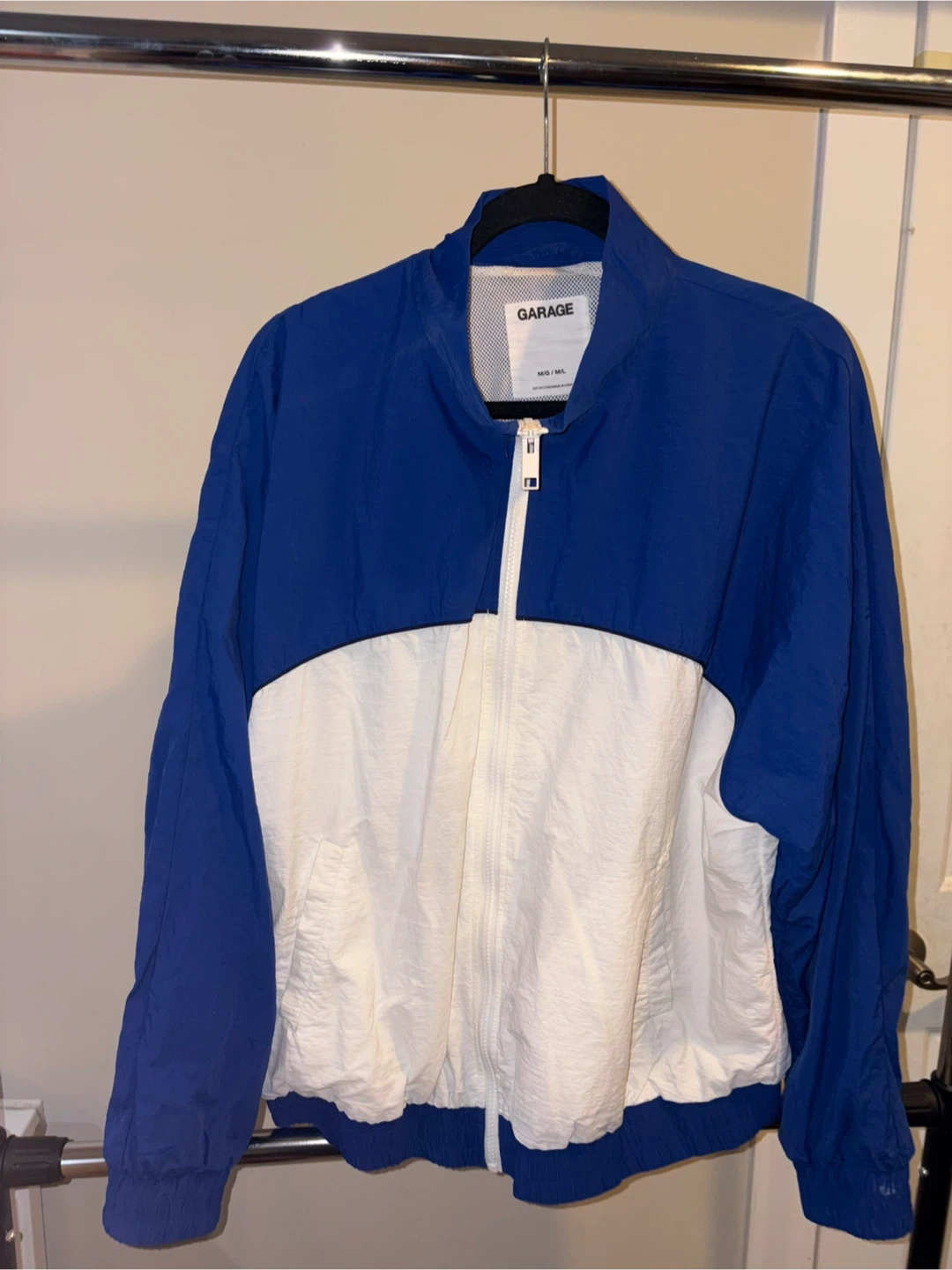Selling a Garage windbreaker in excellent condition! It's a stylish blue and white colour block design. Size is M/L.
