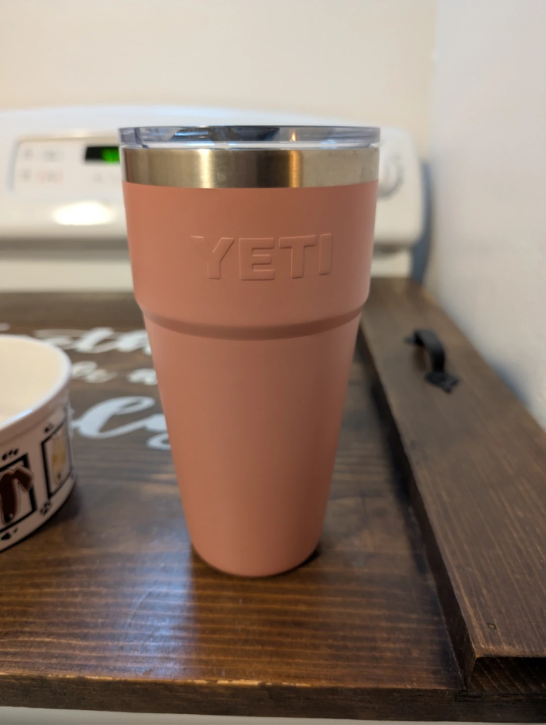 Selling a Yeti 30oz tumbler in a lovely coral colour! It's in great shape and ready for your favourite drinks. It holds 30oz/887ml and is dishwasher safe so it's easy to clean!