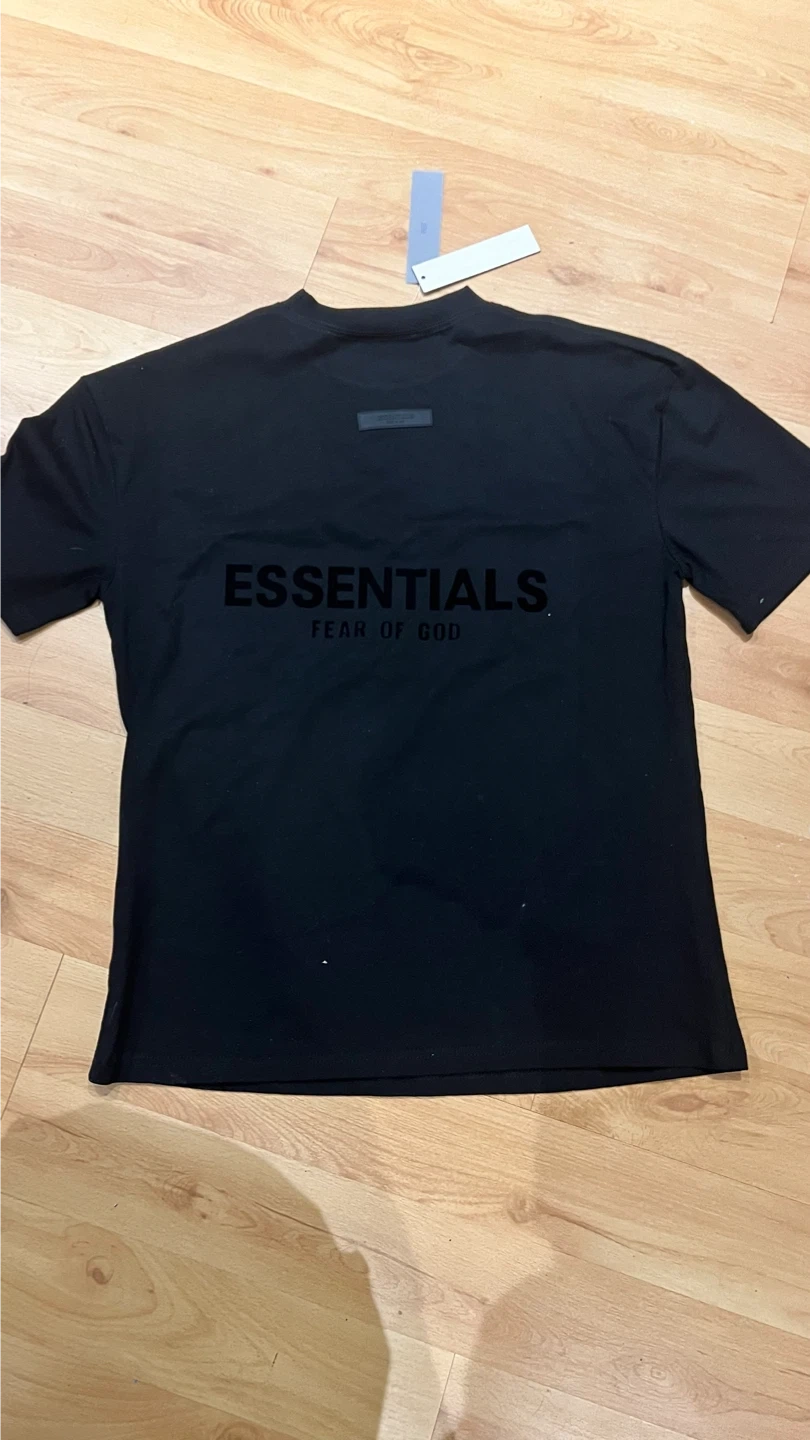 Selling a brand new ESSENTIALS Fear of God t-shirt in black, size large but fits M!It's still in the original packaging with tags attached. A great addition to any wardrobe!