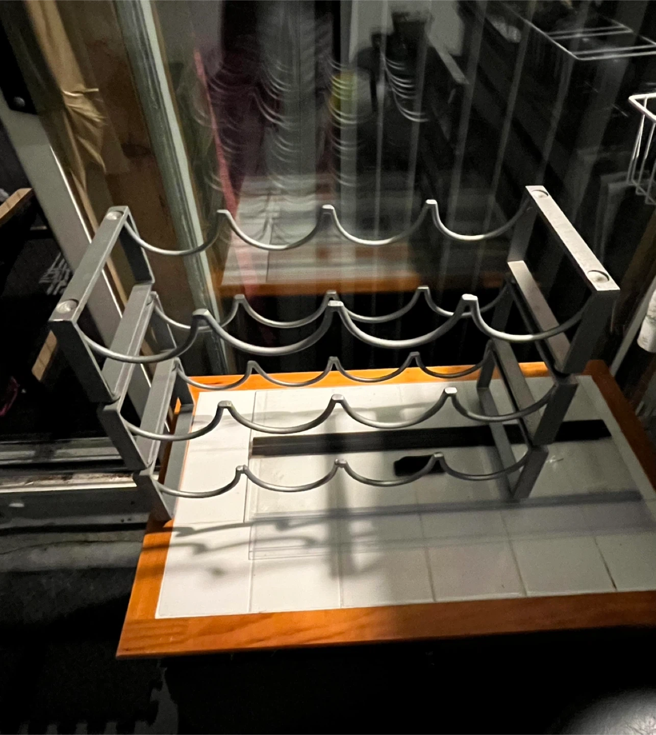 Selling a metal wine rack. It's in great shape and ready to hold your favourite bottles. Perfect for a small space or countertop!