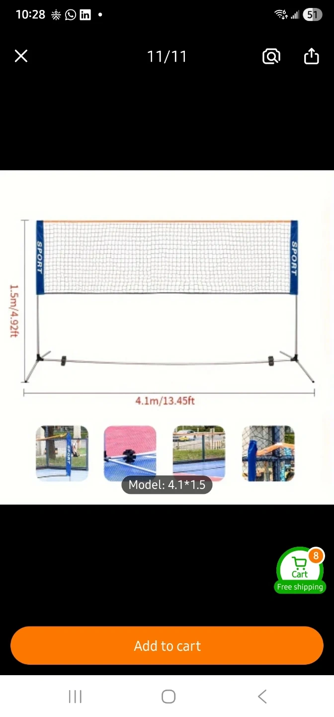 Get ready for some fun with this portable badminton net set! It's easy to set up and take down, making it perfect for backyard games, picnics, or trips to the park. The net measures 4.1m x 1.5m. Comes with a carrying bag for easy storage and transport.
