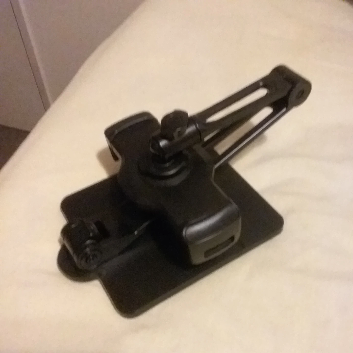 Selling a Twelve South HoverBar Duo adjustable iPad stand in black. It's in great shape and ready to use. This stand is perfect for holding your iPad at the right height and angle for video calls, watching movies, or working hands-free. The HoverBar Duo comes with both a weighted desktop base and an adjustable clamp, so you can use it on a desk or attach it to a shelf or cabinet. It's a versatile accessory for any iPad user!