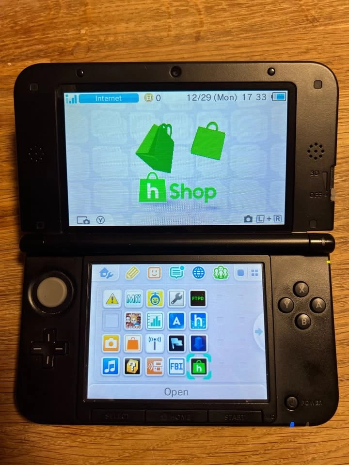 Already has all necessary homebrew apps including hShop, so you can download games immediately.