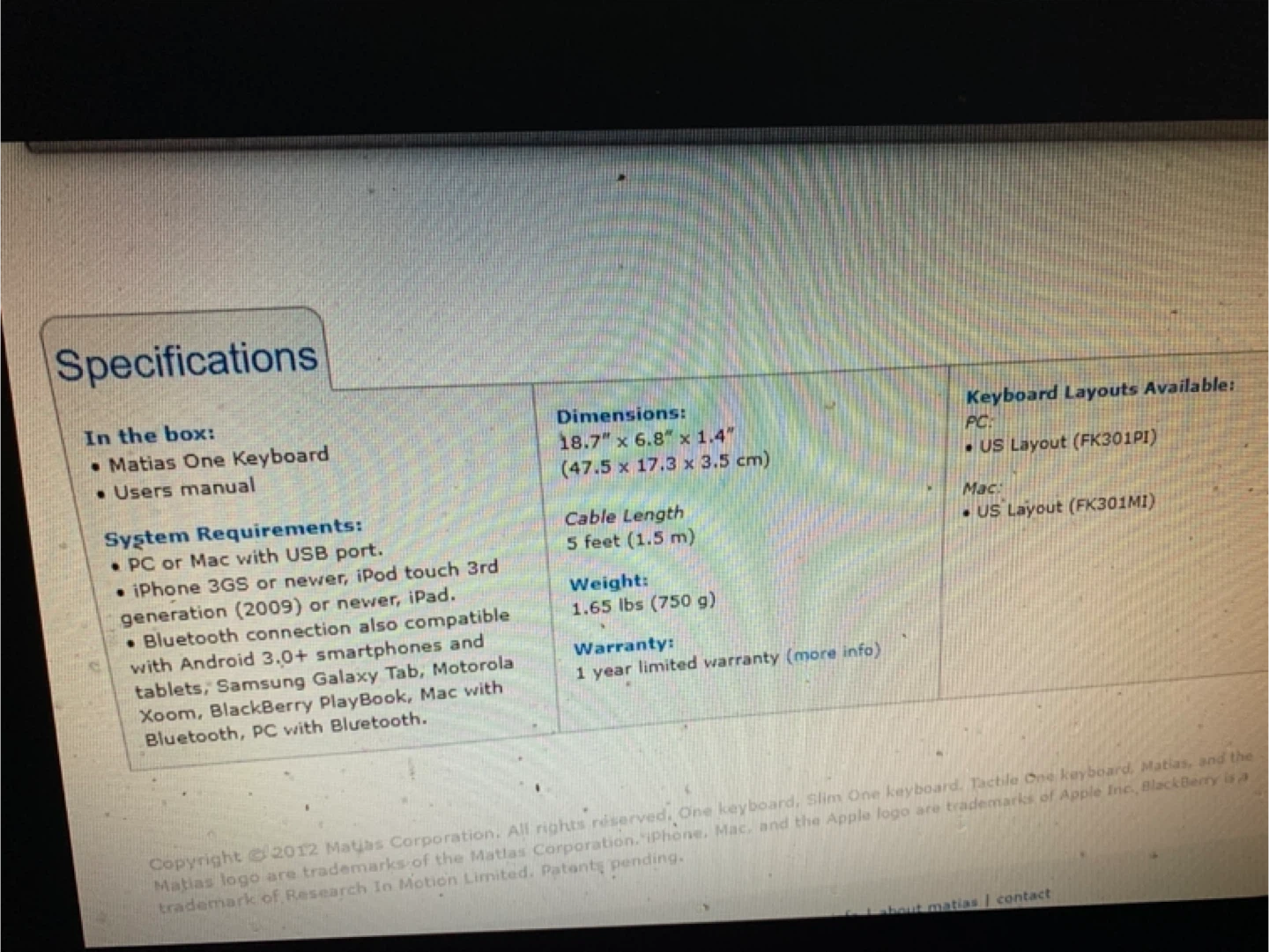 Matias One Keyboard for iPhone, PC/Mac π₯