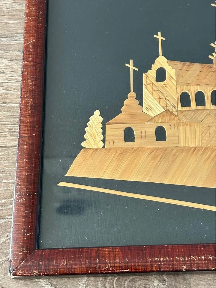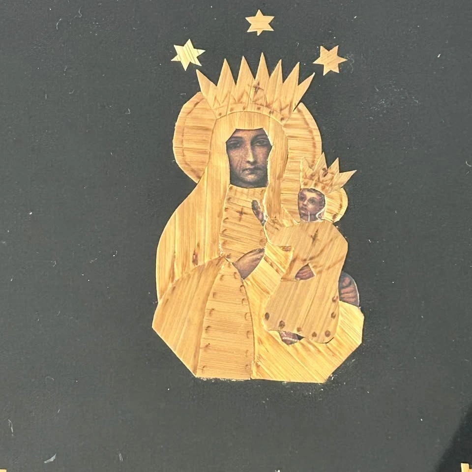 Vintage Straw Art Panel – Jasna Góra Monastery & Black Madonna –