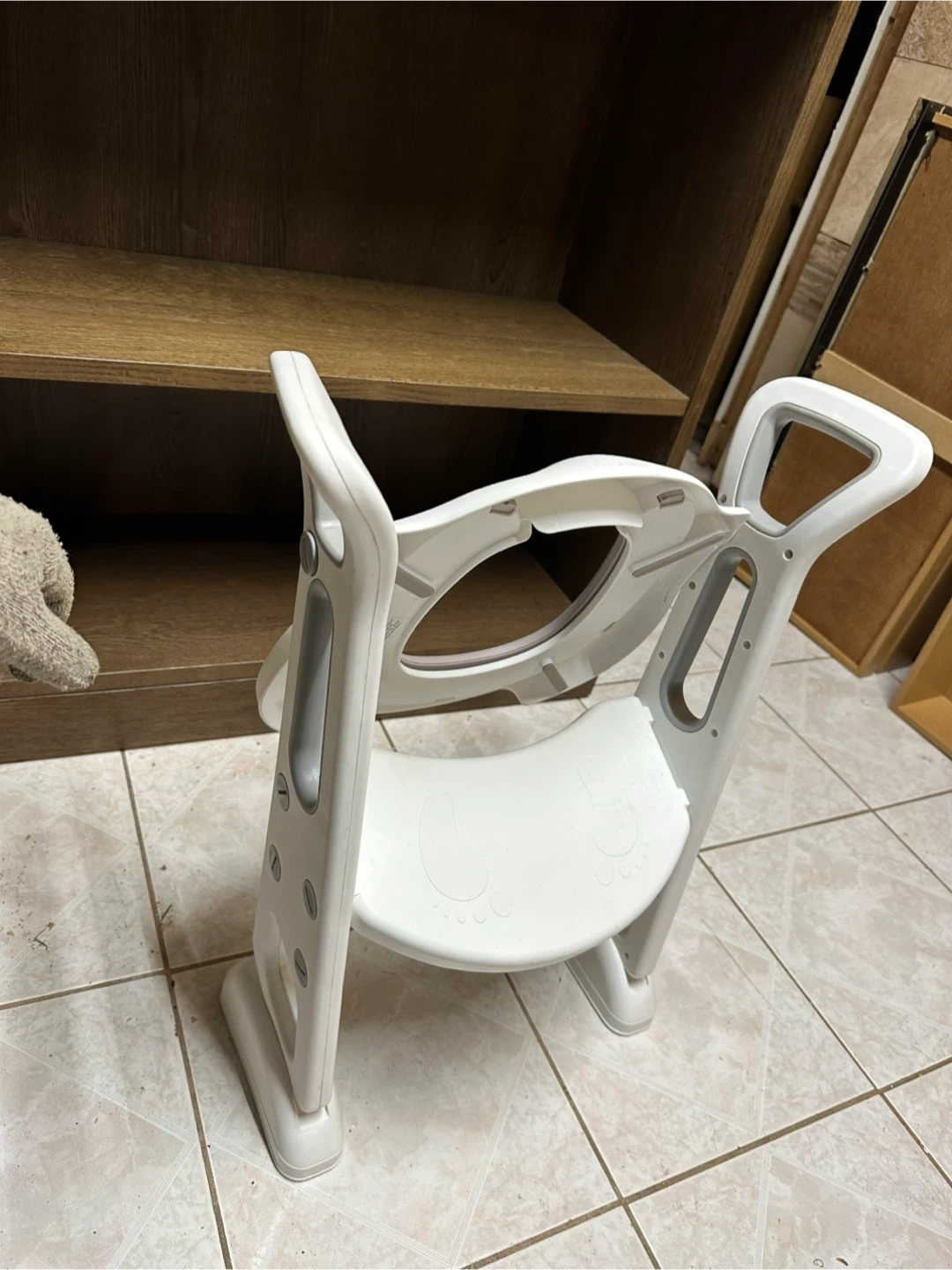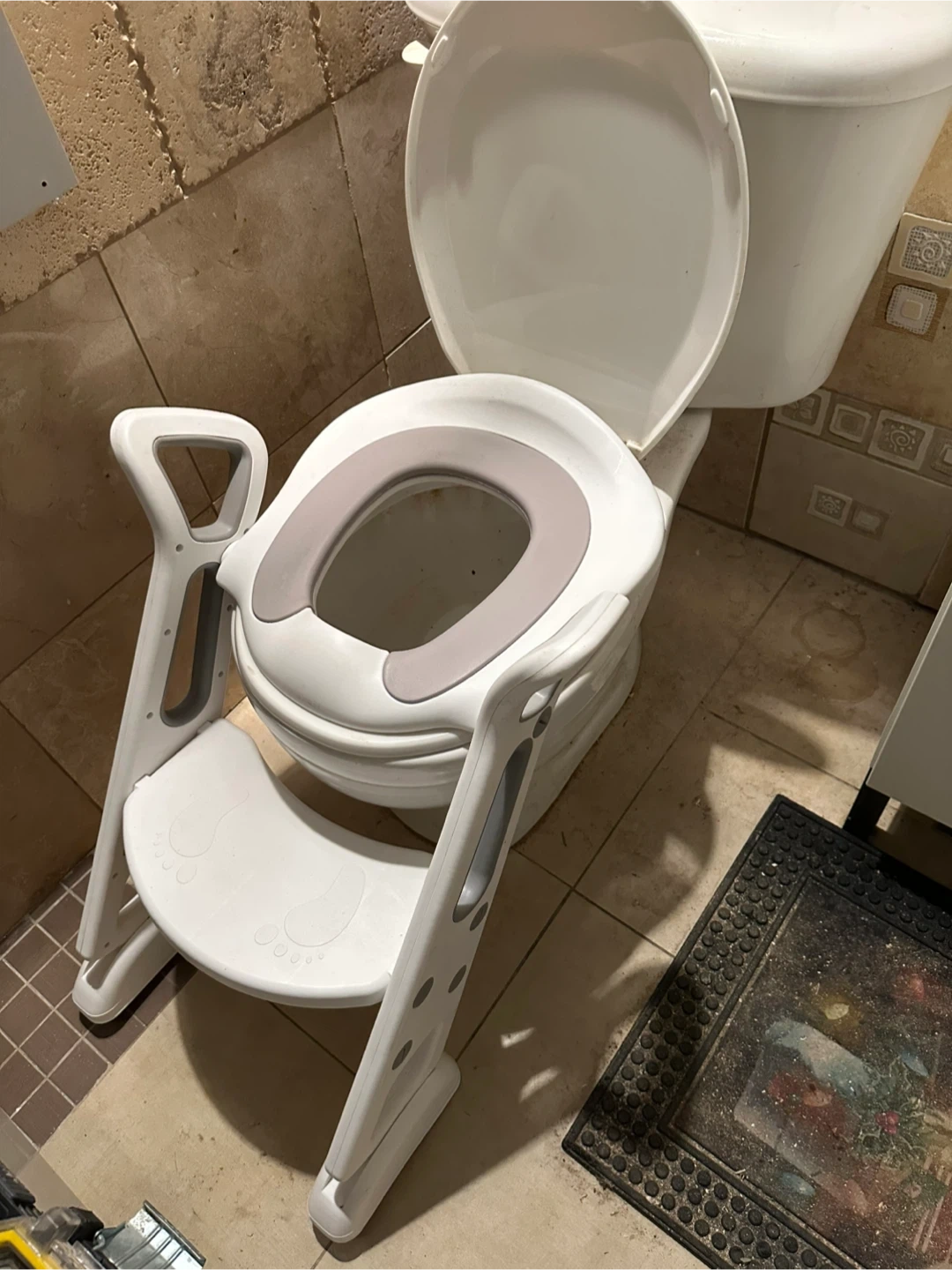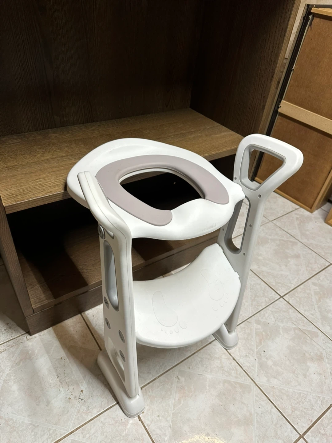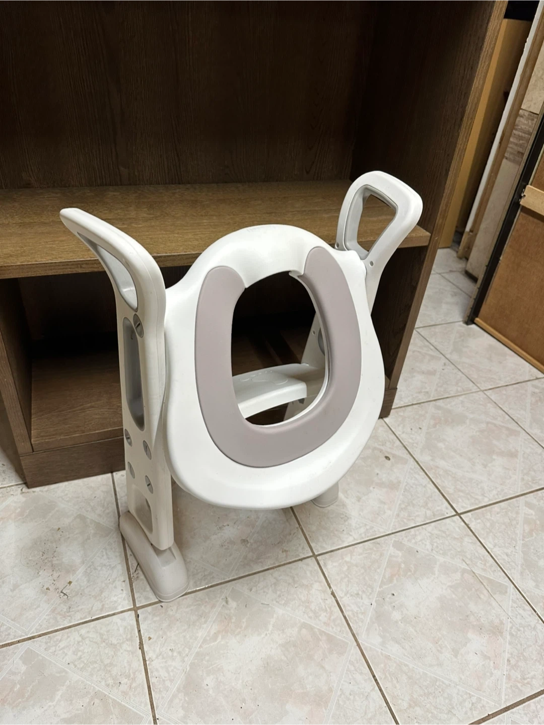Selling a potty training seat with a built-in step stool! It's in great condition and ready to help your little one transition to using the regular toilet. The seat is white with a grey insert and features easy-to-grip handles for added security!