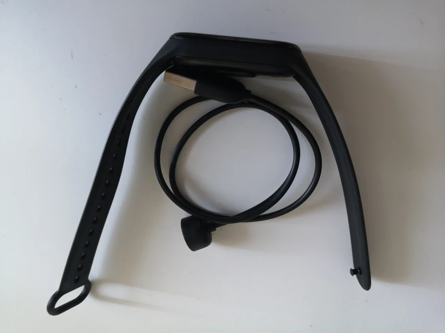 Mi band 5 with a new strap. Comes with the USB charger. It has been gently used and works perfectly fine. Has a battery life of 7 days.