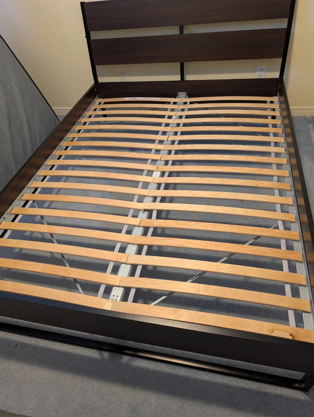 Selling an IKEA Malm bed frame in queen size, complete with Luroy slats and Skorva midbeam. It's in great shape and ready for a new home. Easy to assemble and disassemble. Perfect for upgrading your bedroom!