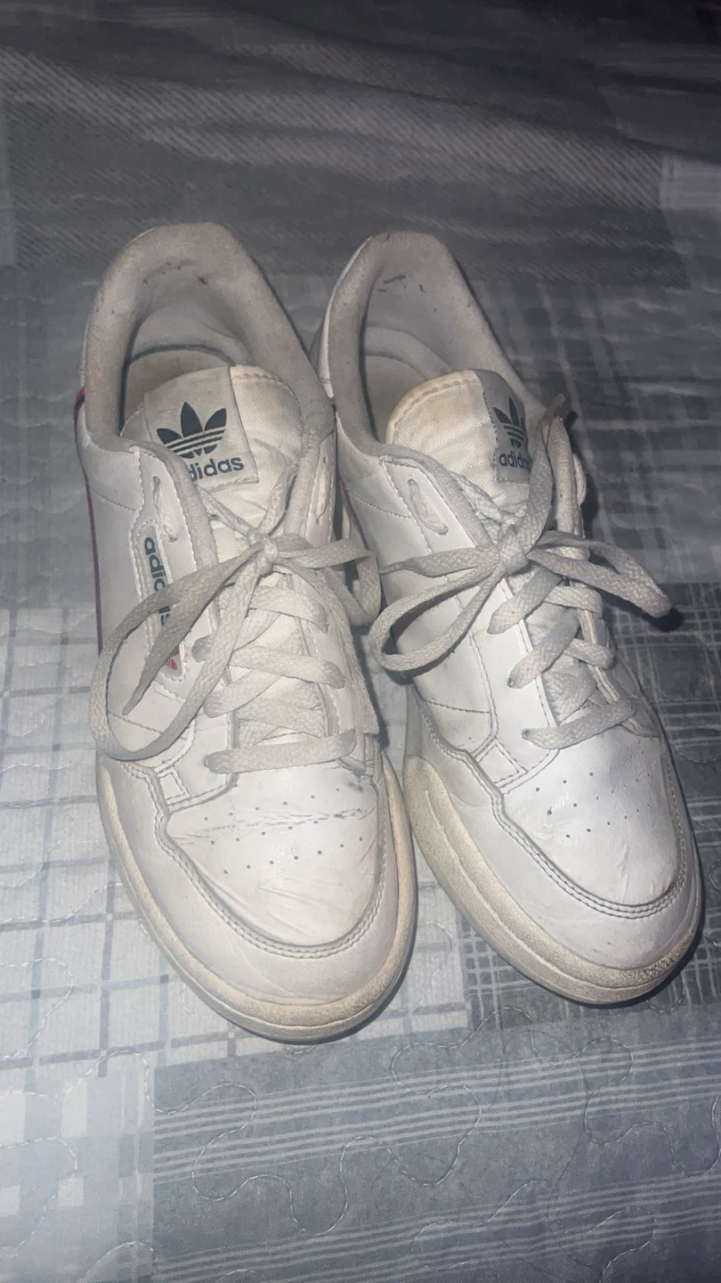 Selling a pair of Adidas Continental 80 sneakers. They show some signs of wear, as you can see in the photos, but they're still in good condition. The size is US 6. Great for casual wear!