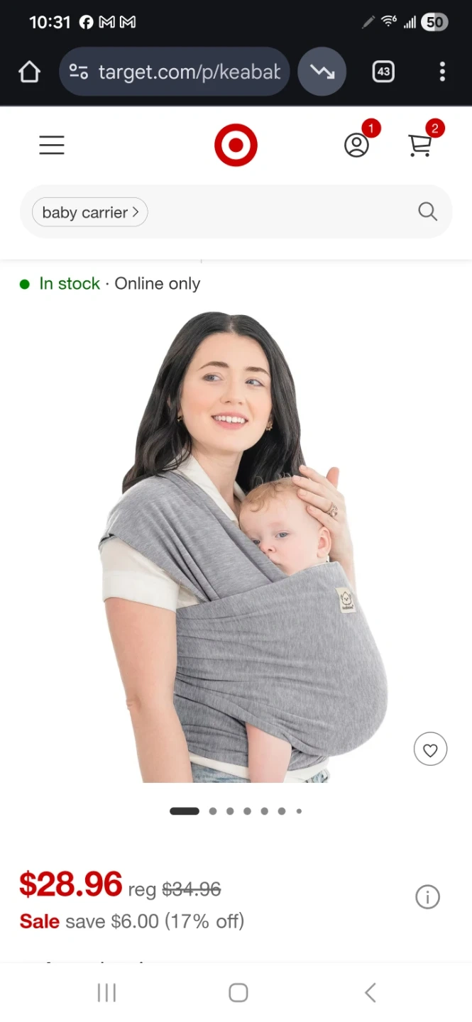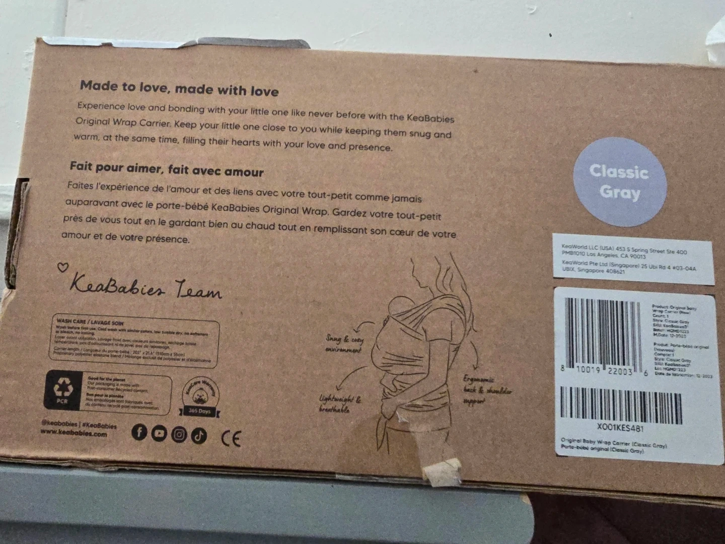 Selling a KeaBabies Original Baby Wrap Carrier in Classic Gray! This wrap is designed for babies 0-36 months (7-35 lbs). It's lightweight and breathable, providing ergonomic back and shoulder support for you while keeping your little one snug and secure. The box is included. Originally bought for $28.96