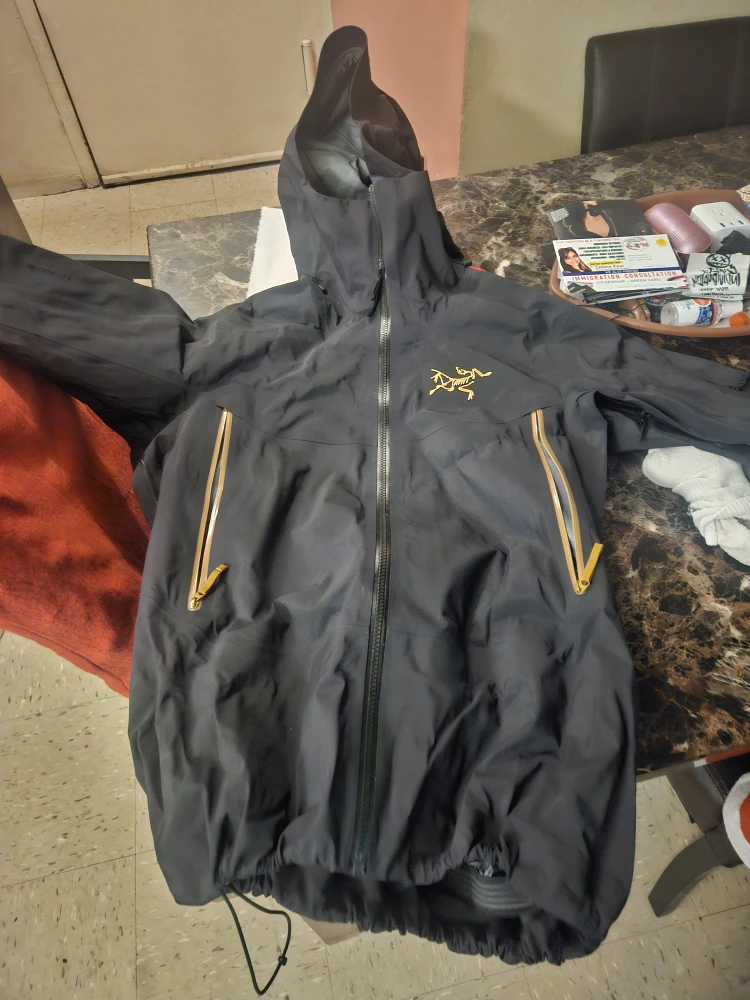 Arc'teryx jacket in size men's small. It is black with gold accents. Great condition only worn once!
