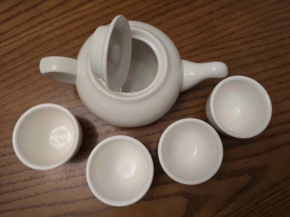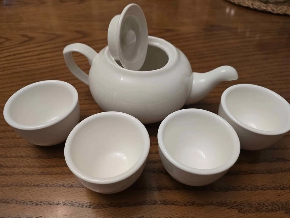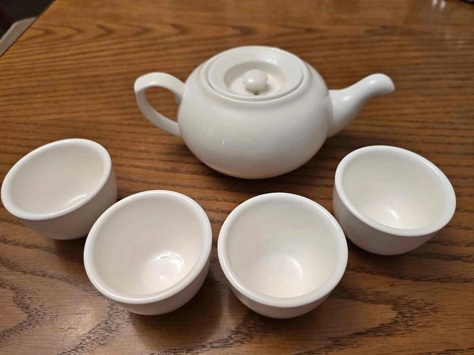 EUC. Teapot and 4 cups. Rarely used. Purchased in Chinatown in Victoria. Dishwasher safe. Completely non-smoking and pet free home. Easy porch pick up in Esquimalt. $8