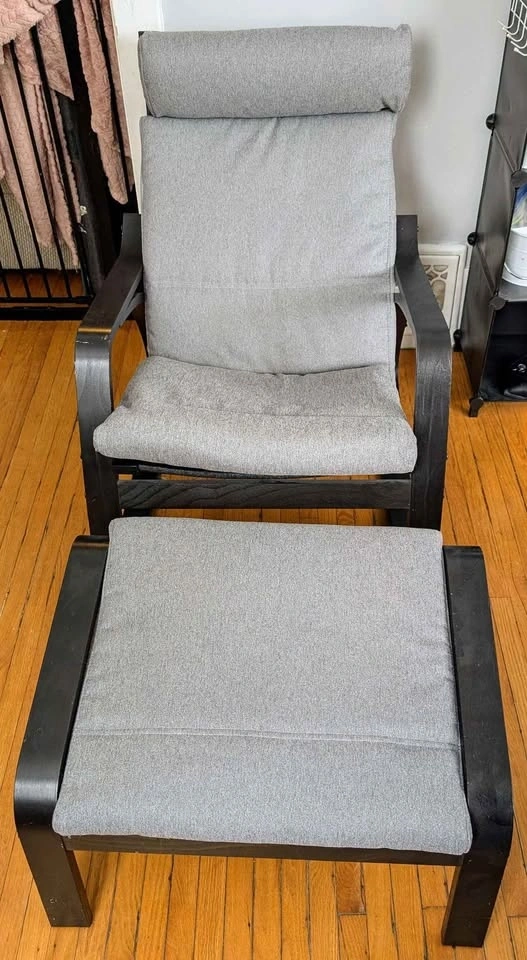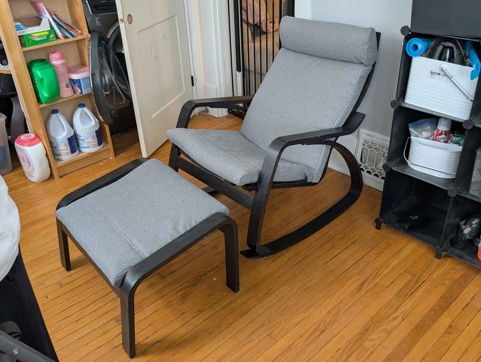 POÄNG rocking chair has stylish curved lines in bentwood, providing nice support for the neck. The rocking feature adds an extra dimension to the comfort, allowing you to fully relax. Enjoy rocking!