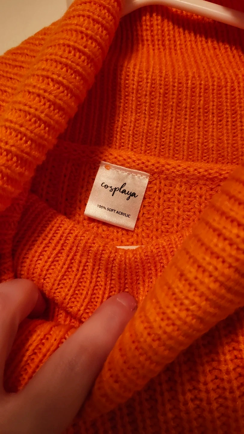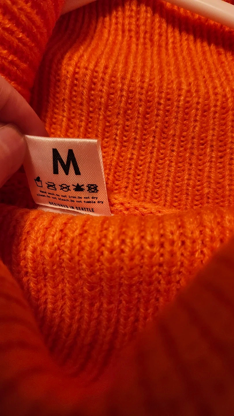 Cozy orange turtleneck sweater by Cosplaya, perfect for adding a pop of colour to your wardrobe! It's a size M and made of 100% soft acrylic. Designed in Seattle, this sweater is sure to keep you warm and stylish