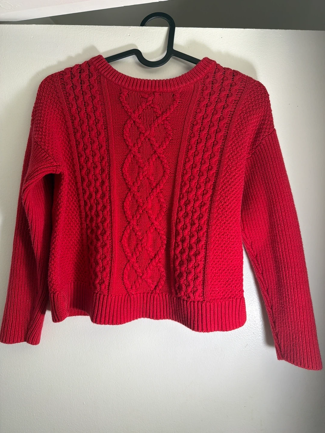 Selling a cute red cable knit sweater from GAP Kids! It's a size small and would be perfect for keeping your little one warm and stylish. The material is soft and cozy, great for everyday wear.