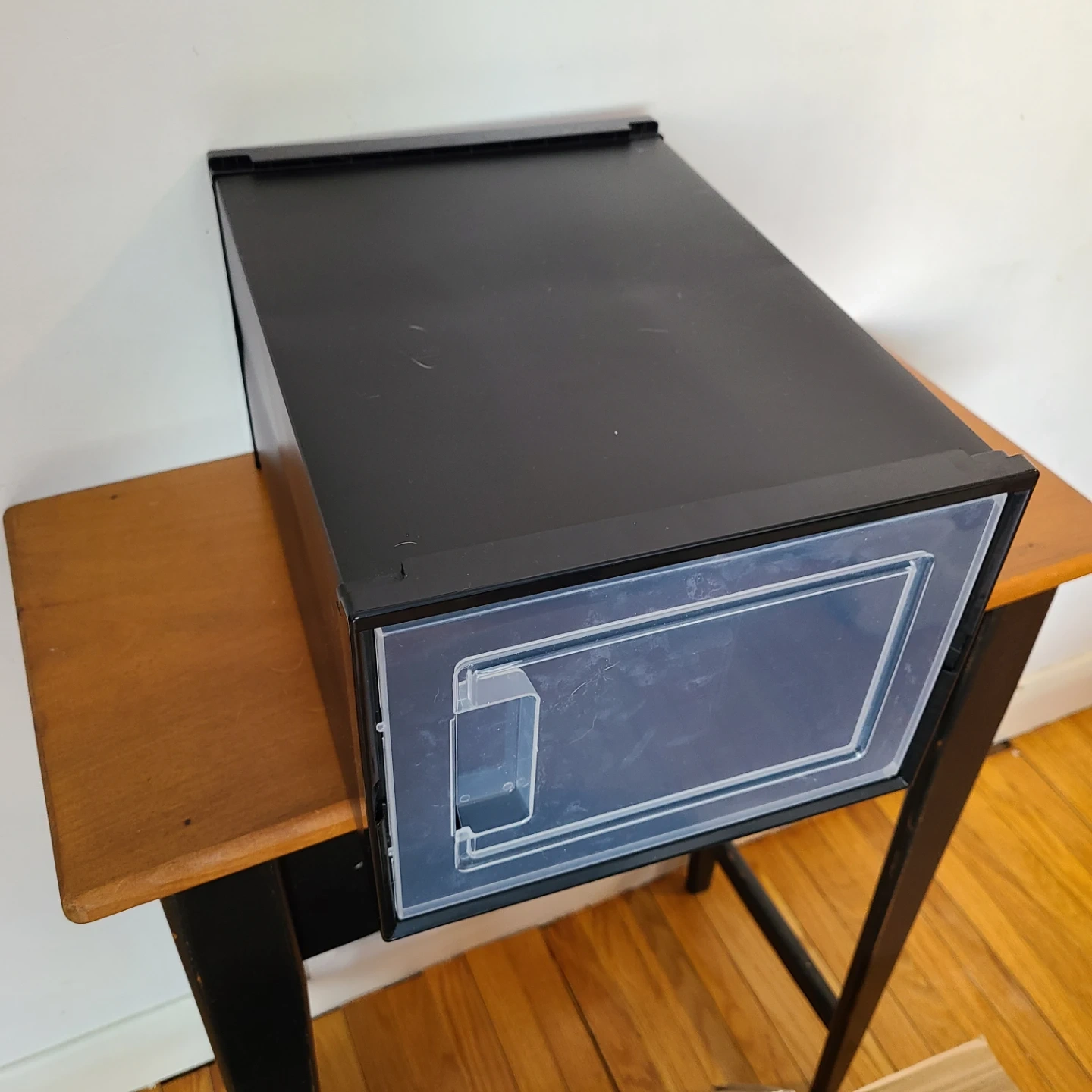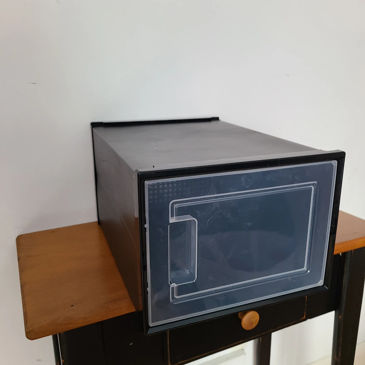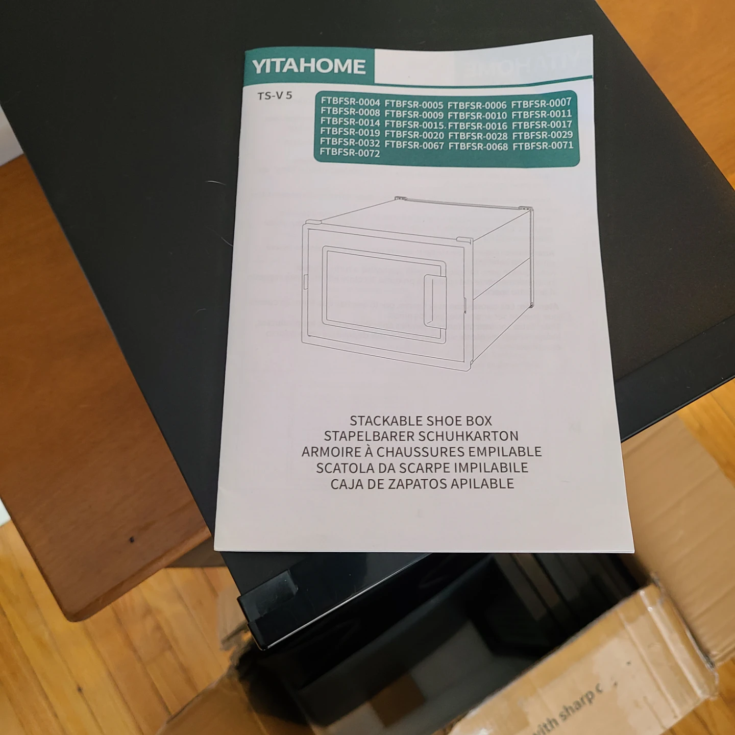 I'm selling 4 black stackable shoe storage boxes. It comes with all of the components, and the box is included as well! This is a great way to organize your shoes and keep them in good condition