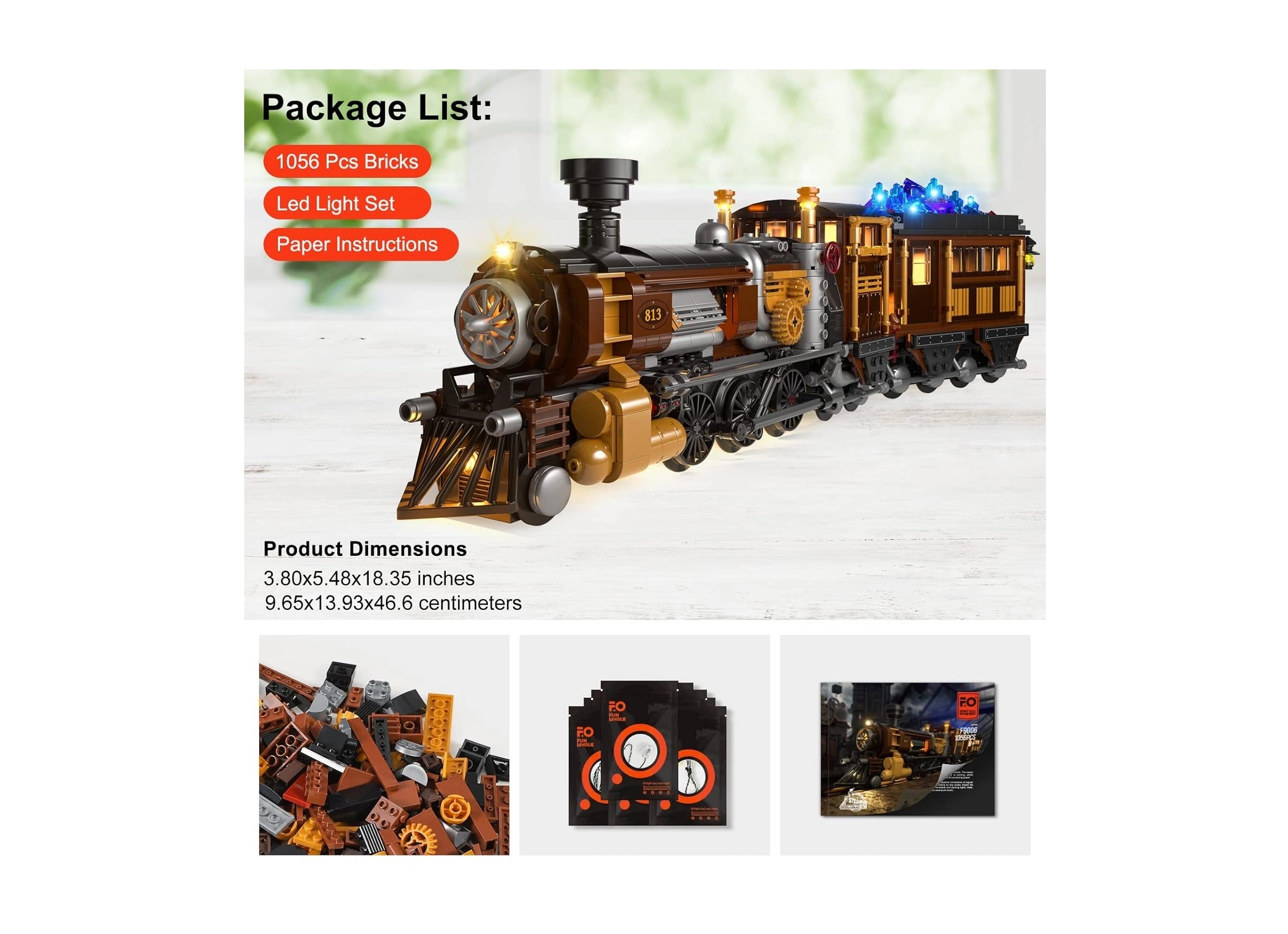 Funwhole Train Lighting Building Bricks Set Steampunk | 1056 Pcs