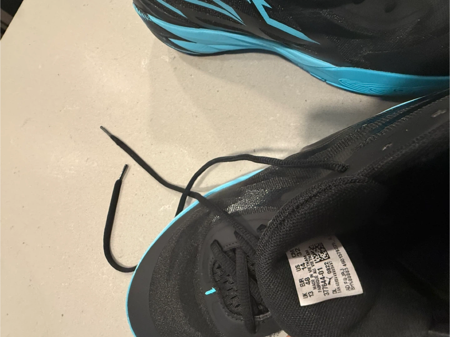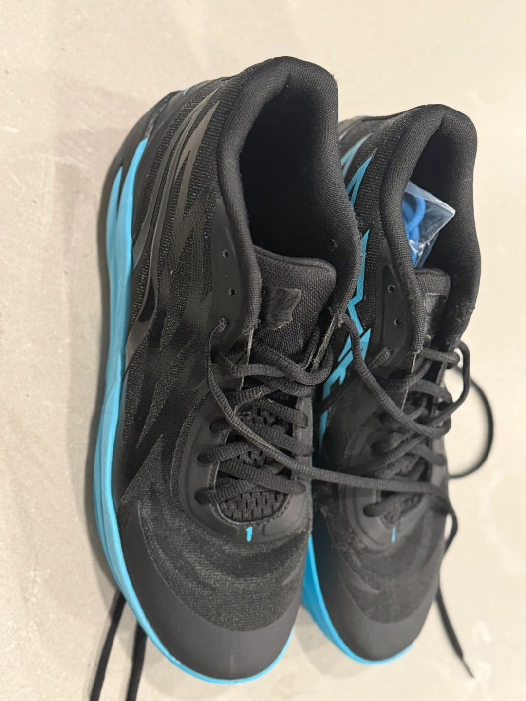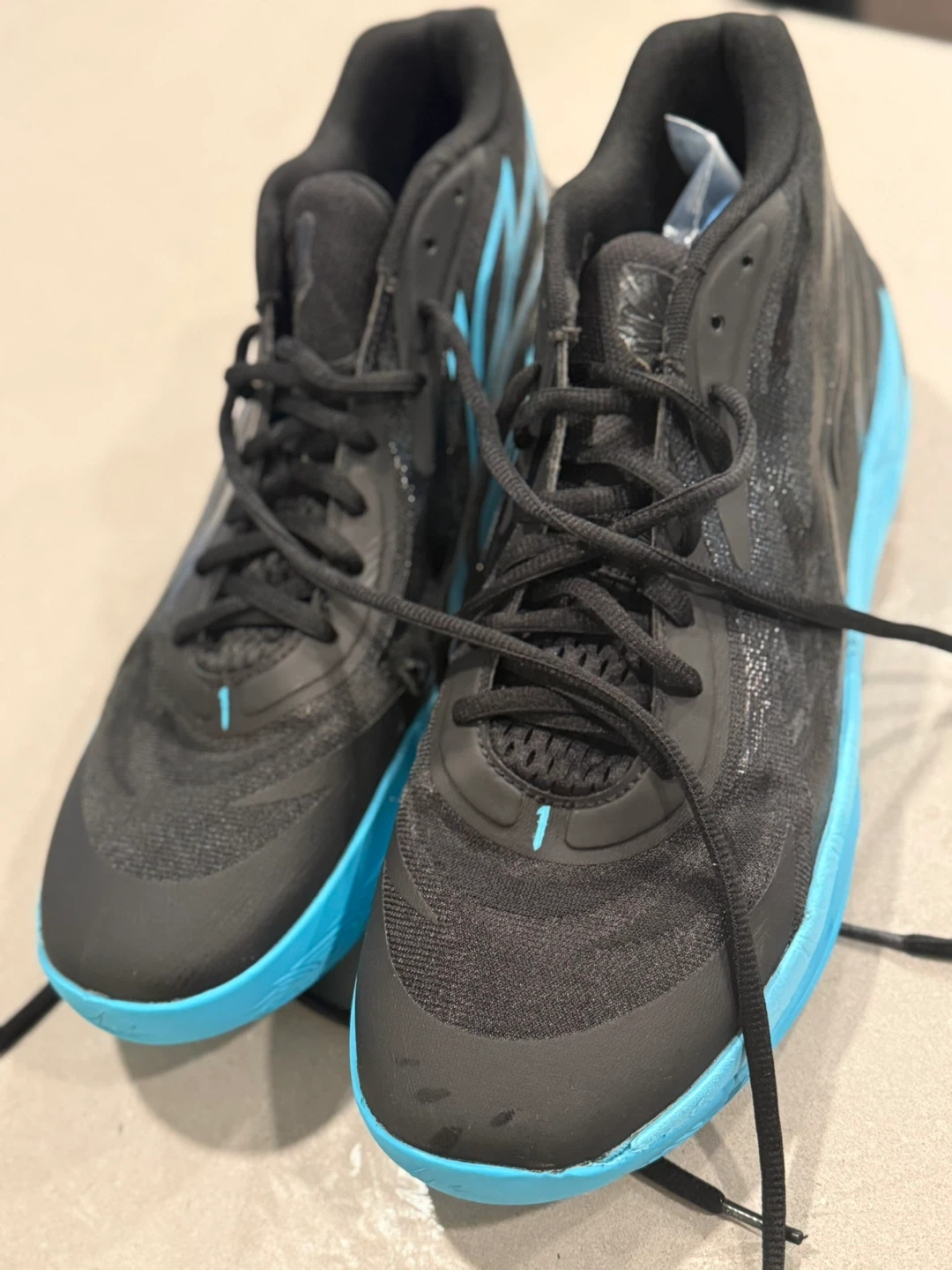 Selling a pair of Puma basketball shoes in black and blue. They're in good condition and ready for the court!