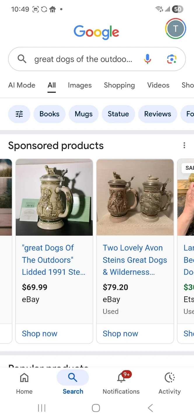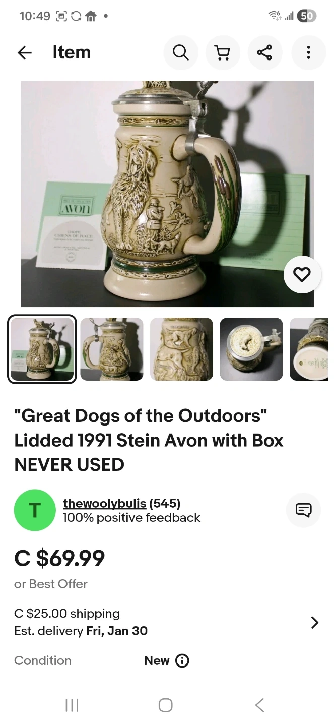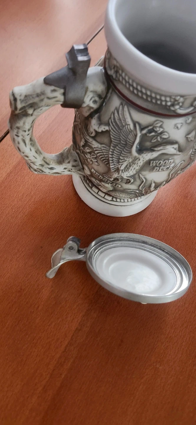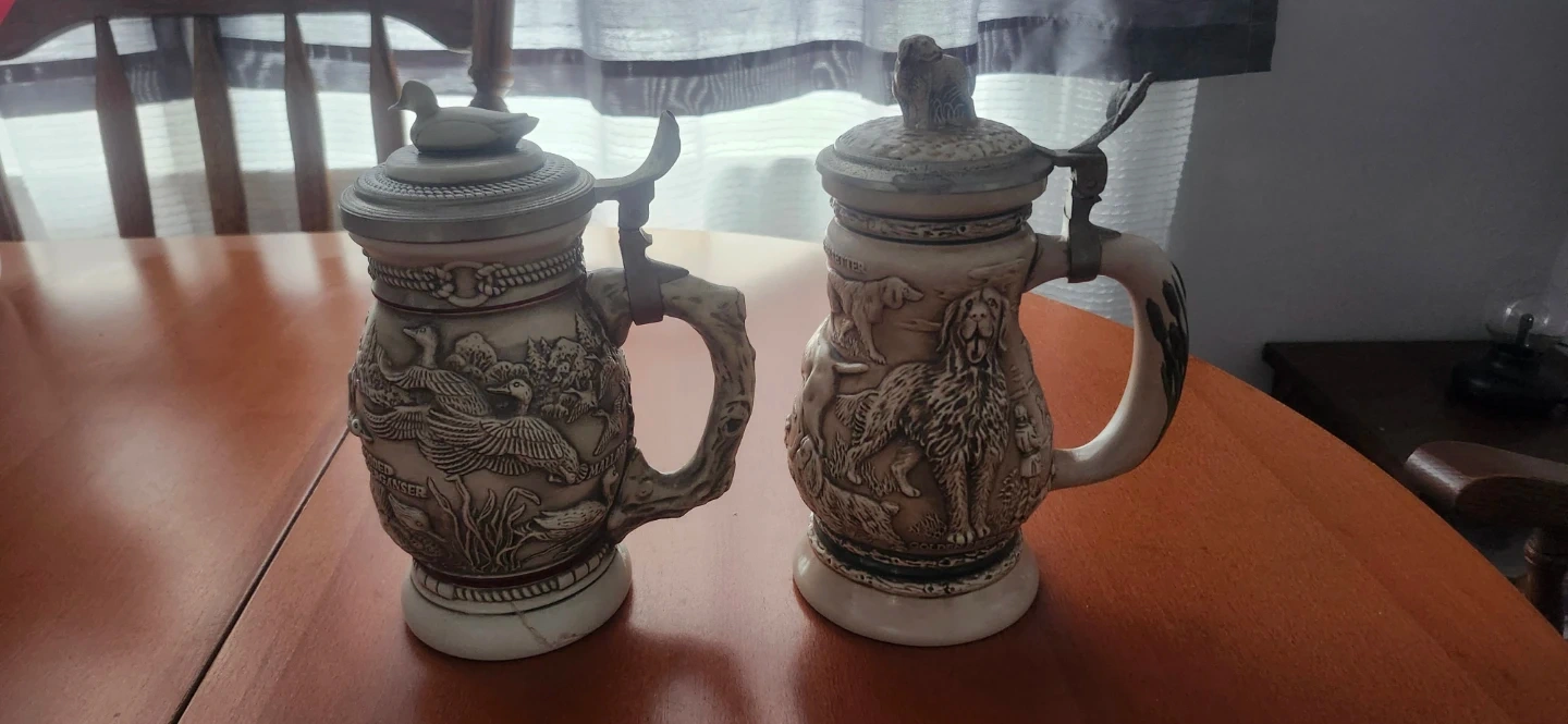 Selling two Avon Collectibles steins. One is from the "Great Dogs of the Outdoors" series, featuring various dog breeds. The other is the "Northern Wilderness Duck" stein. Both are in great shape and would make a lovely addition to any collection!