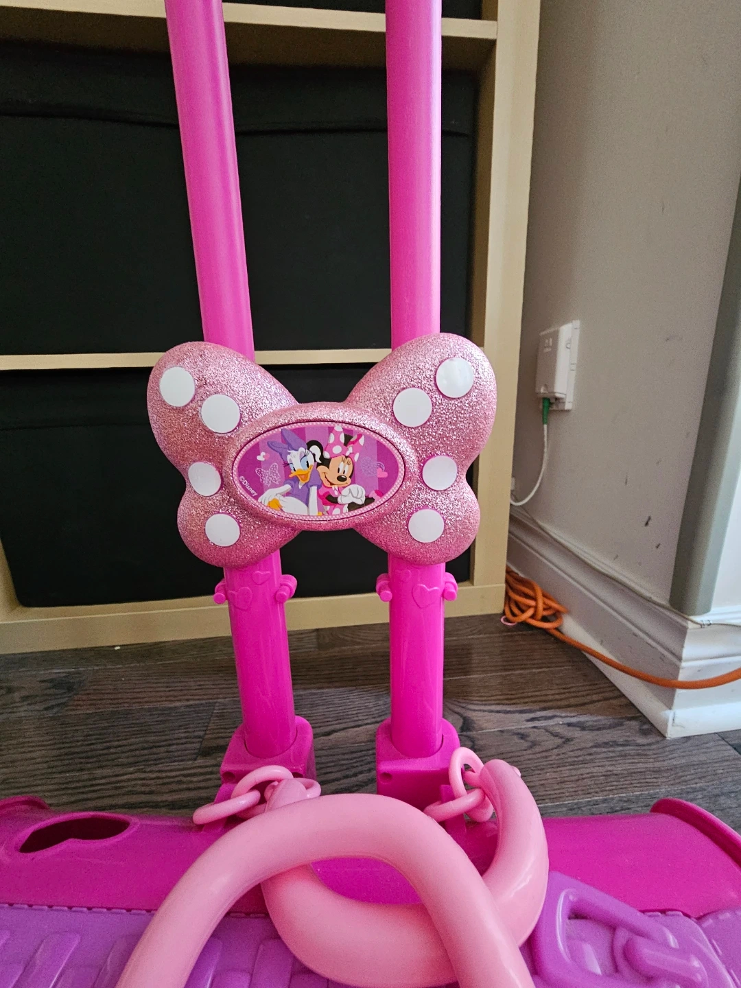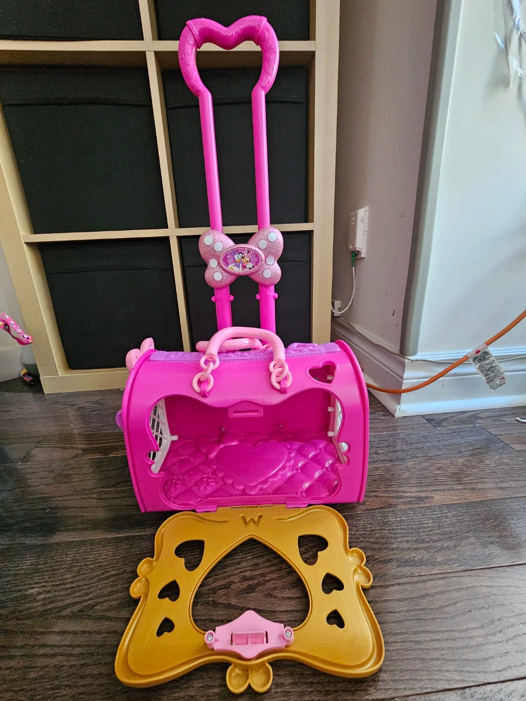 Selling a cute Minnie Mouse rolling suitcase toy! It's pink and purple and has a retractable handle. Perfect for little ones who love Minnie Mouse and pretend play