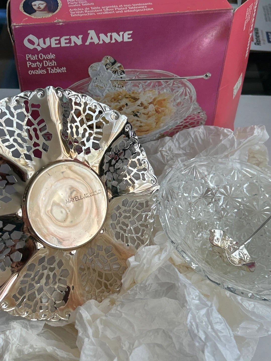 🥕Selling a vintage Queen Anne Plat Ovale Party Dish! It comes with the original box. A Mayell product, made in England. Perfect for serving at your next gathering. In very good and clean condition. Was kept the whole time inside the original box.