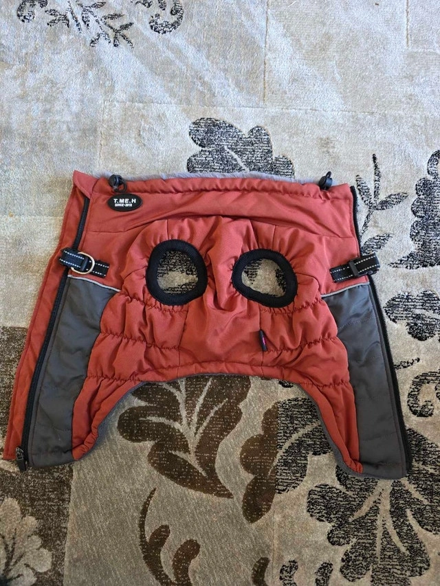 Keep your furry friend warm with this gently used T.ME.H dog/cat coat, size small, perfect for chilly Canadian weather. This coat features a cozy lining and durable outer shell to protect your pet from the elements. Available as long as posted. Payment: Cash accepted