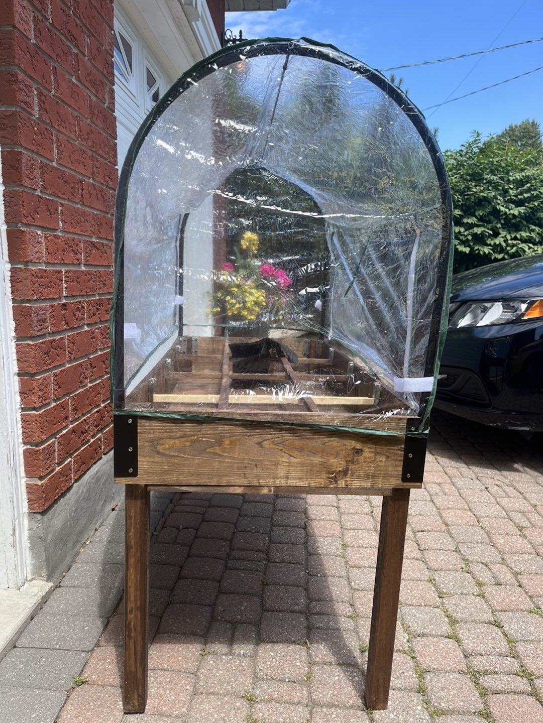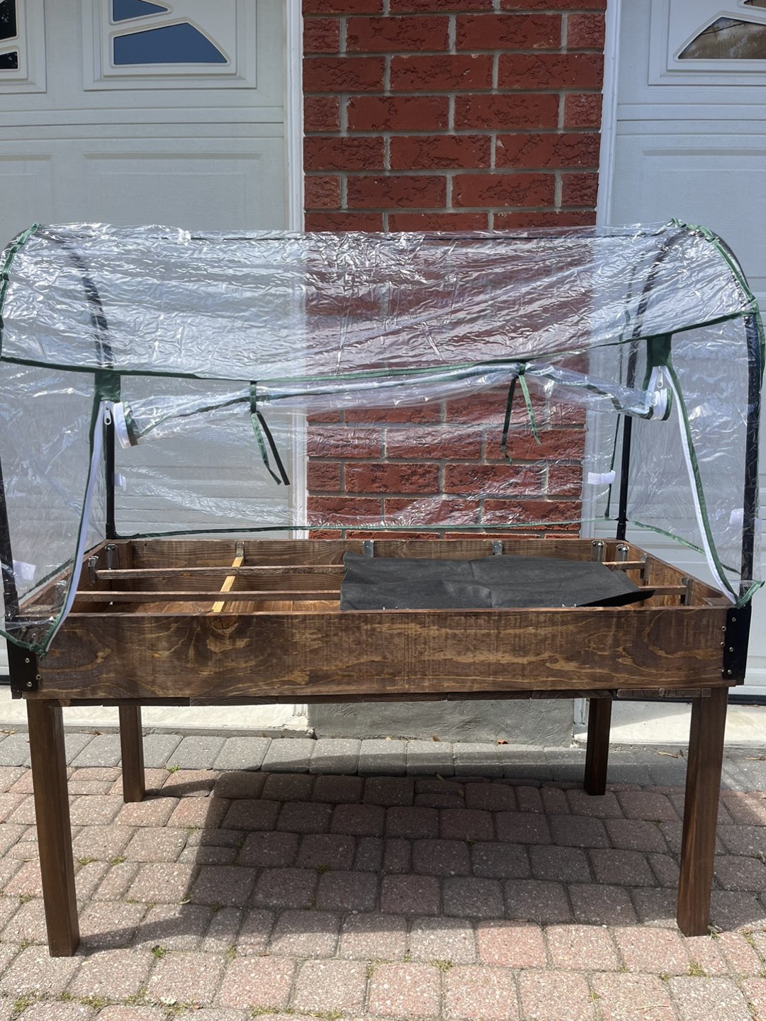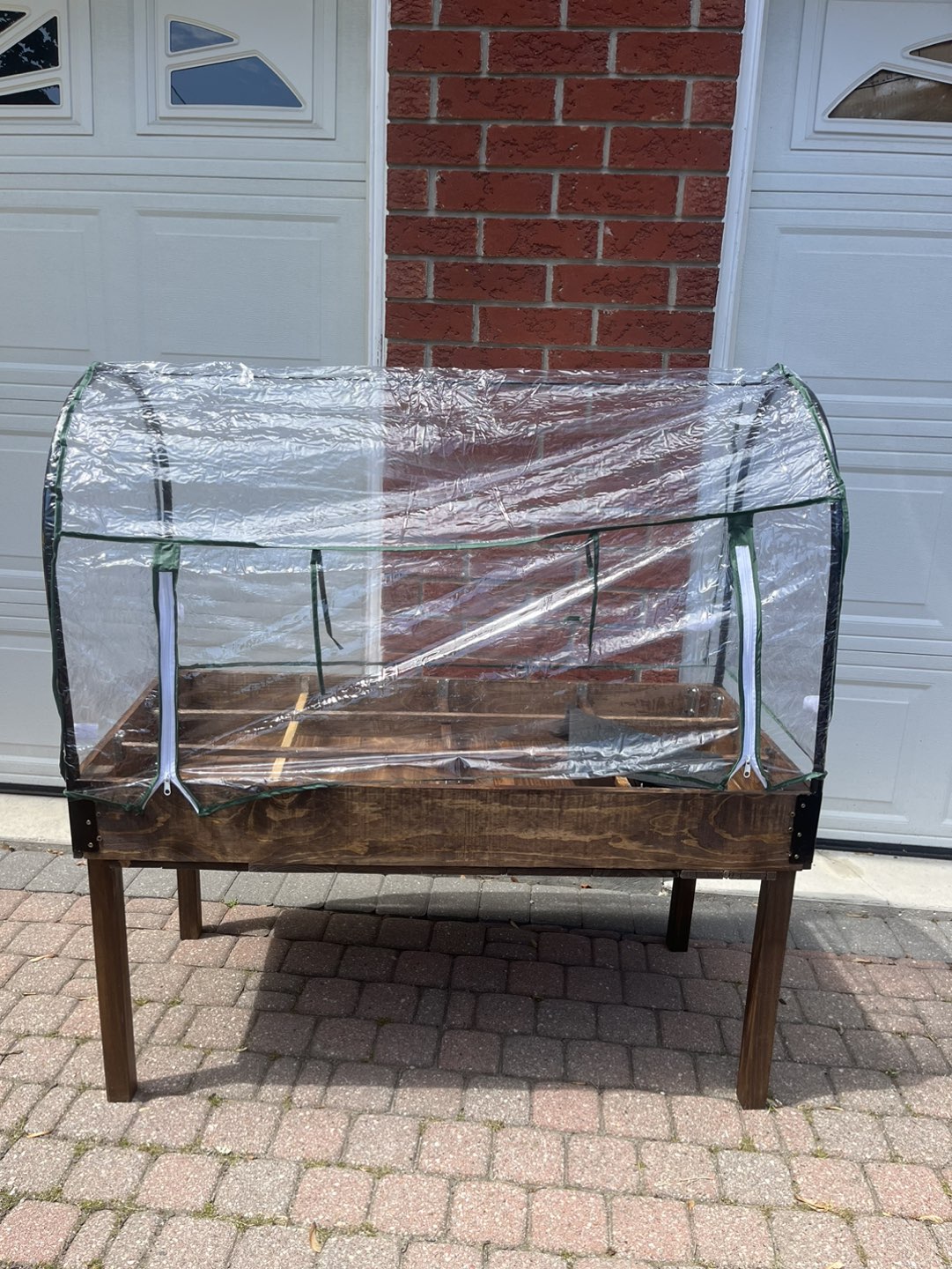 Wooden raised planter bed with detachable plastic cover to sprout seedlings and keep out animals and protect from bad weather Zipper door for ventilation Lightweight and already assembled!