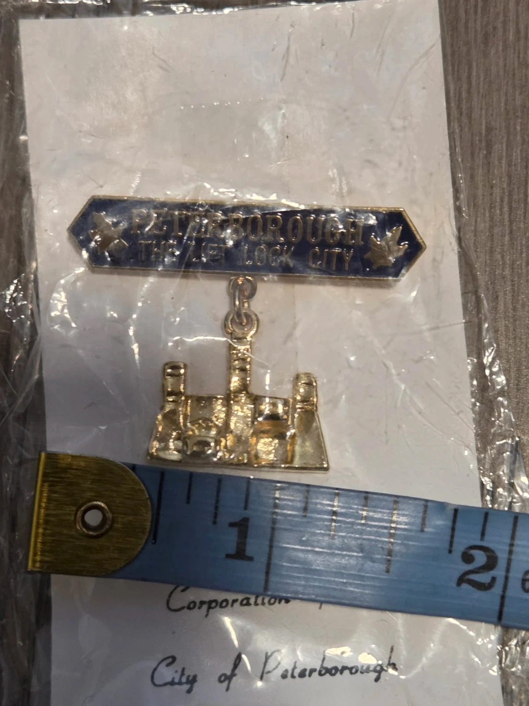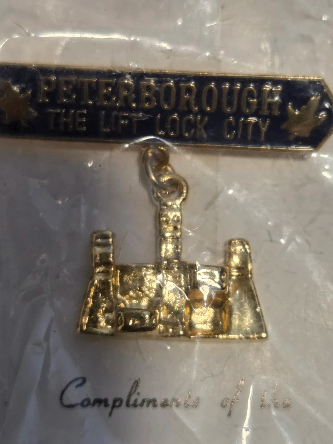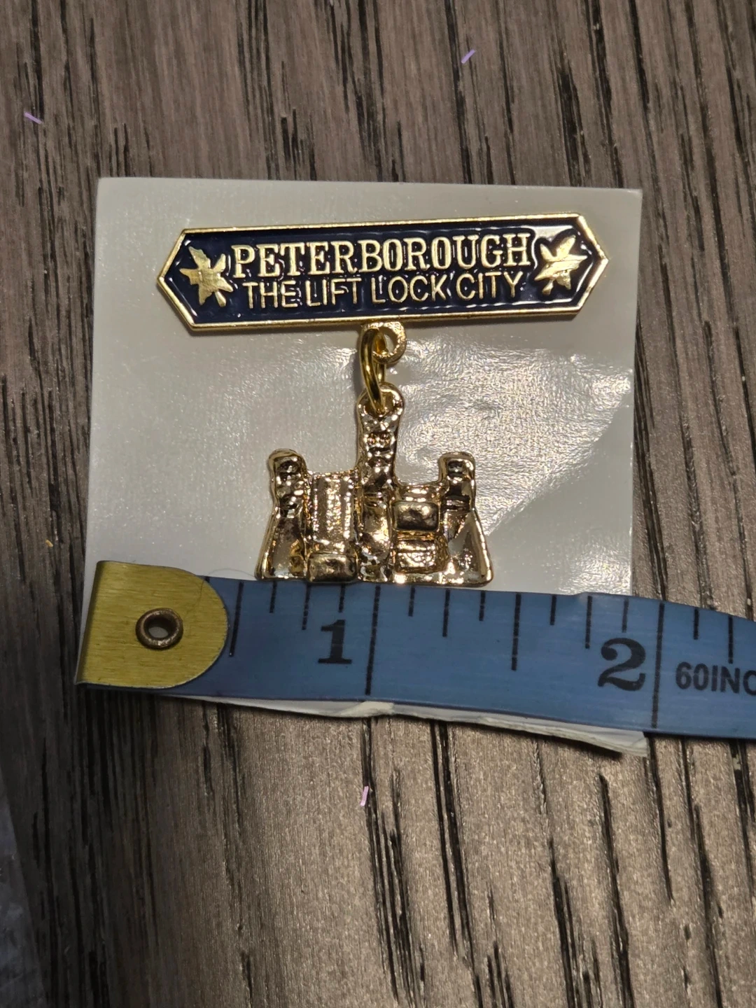 Selling 2 Peterborough Lift Lock City pins. It's a cool souvenir from Peterborough, known as the Lift Lock City! The pin shows the famous Lift Lock, a neat part of the Trent Waterways System. This hydraulic lift is the highest in the world, at 65 feet!