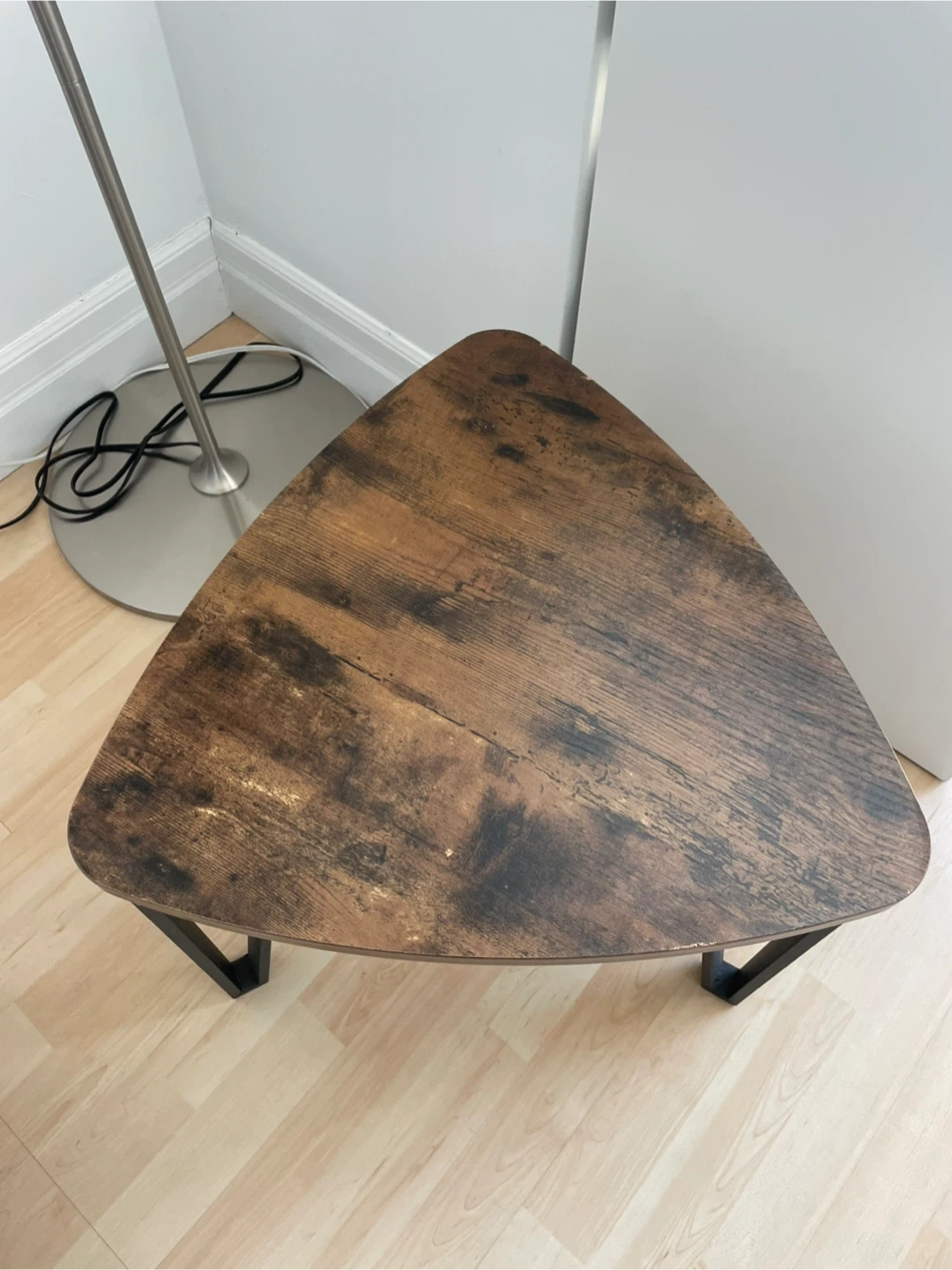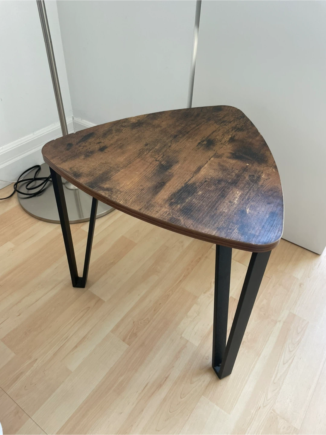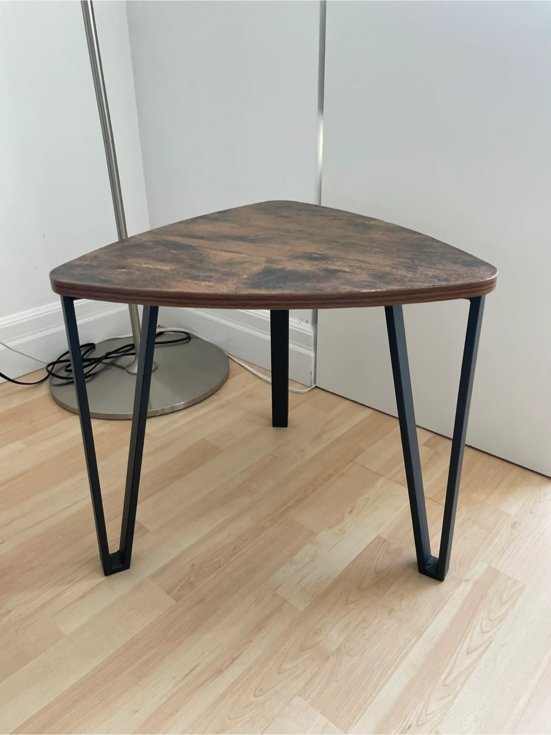 Selling a triangle-shaped side table! 17.5 inches wide each way.
