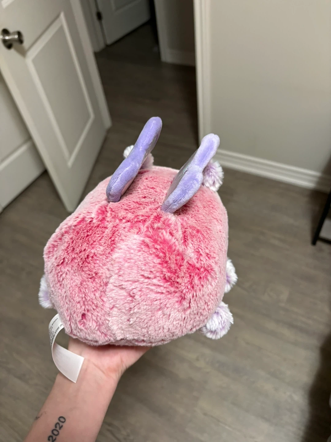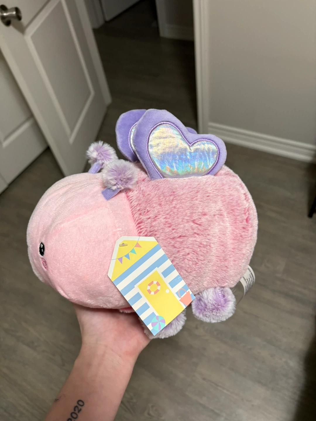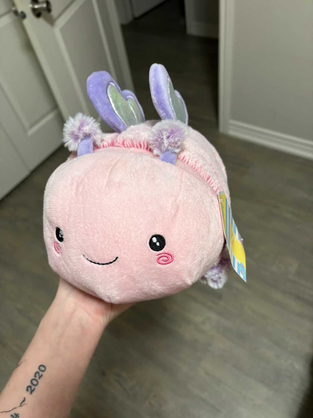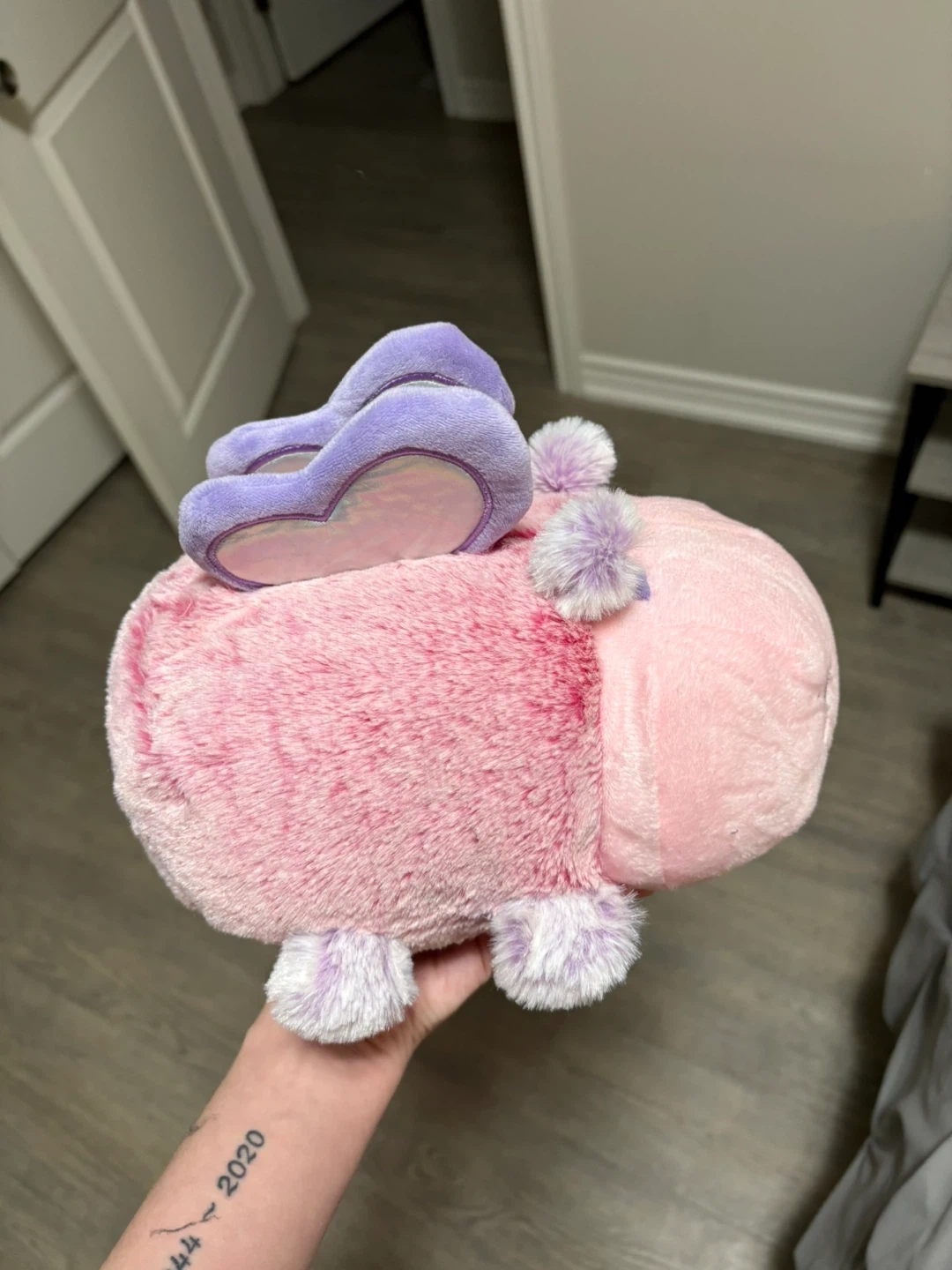 Super cute pink butterfly plush pillow pal! It's in great condition and ready for a new home. It has purple heart wings and little purple pom poms. Perfect for cuddles or decoration!