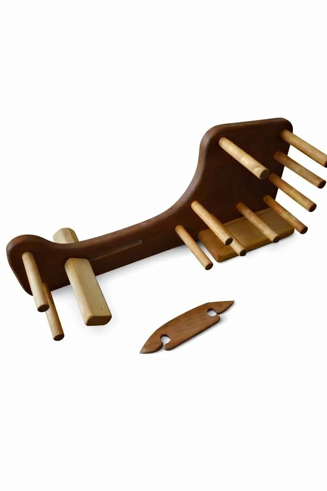 Beautiful portable inkle/tablet weaving loom made from cherry wood. Great for band weaving (belts, straps, trims, guitar straps, bag straps), and tablet weaving projects. Smooth finish and solid construction.