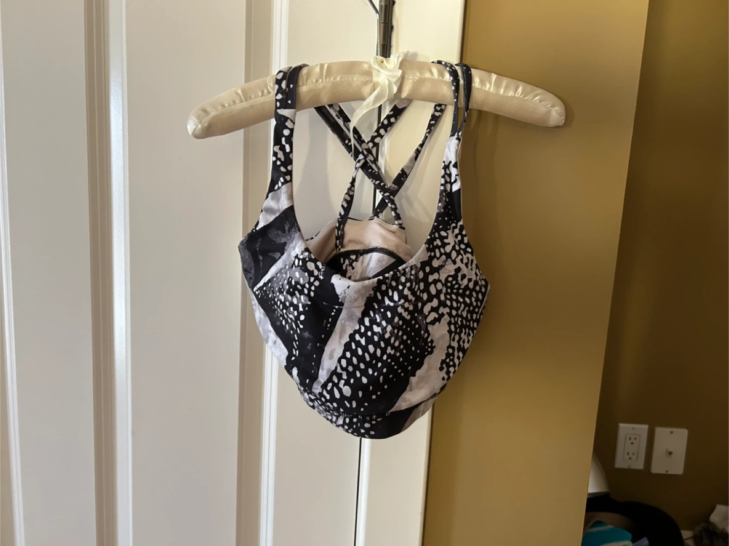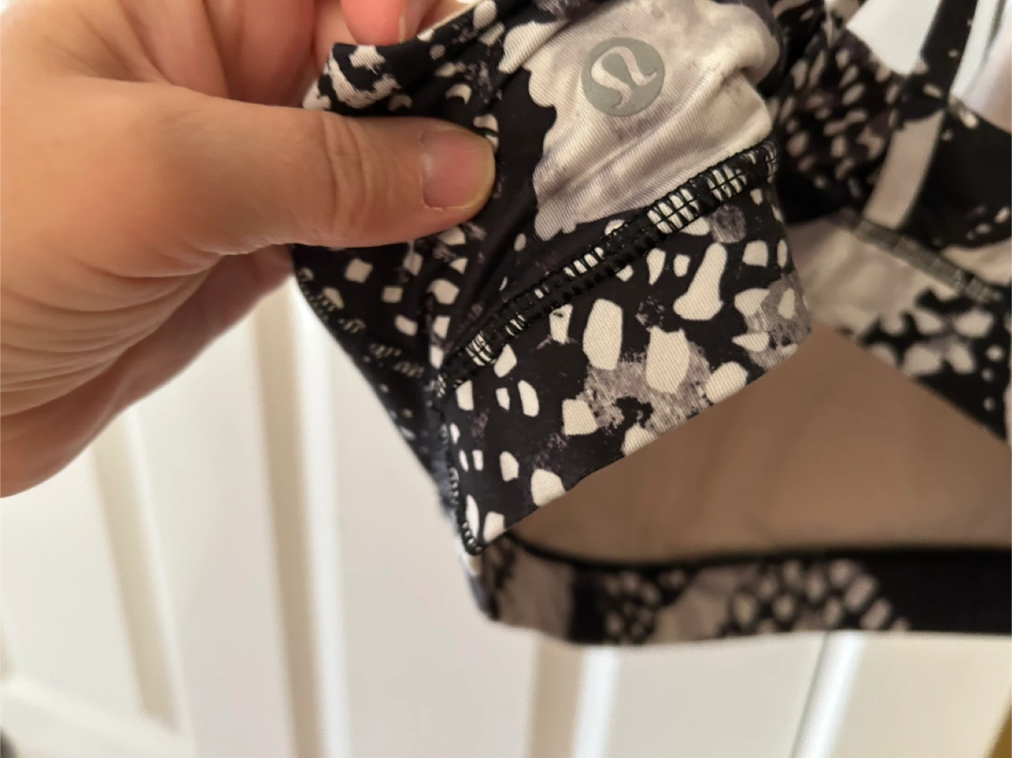 Selling a Lululemon sports bra in a stylish black and white pattern! It's in great condition and ready for your workouts. Perfect for any fitness activity