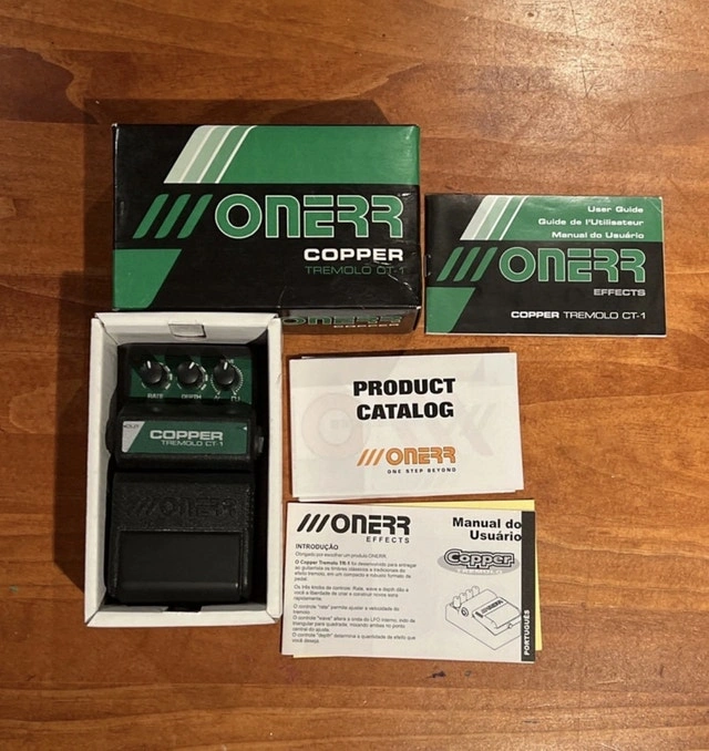I'm selling a vintage Onerr Copper Tremolo CT-1 guitar pedal in excellent condition in box with all original paperwork, catalog and user guide. Very similar to BOSS It delivers a range of tremolo tones from subtle to choppy, perfect for experimenting with different musical styles. * Type: Tremolo * Model: CT-1 * Brand: Onerr Try it before you buy it.