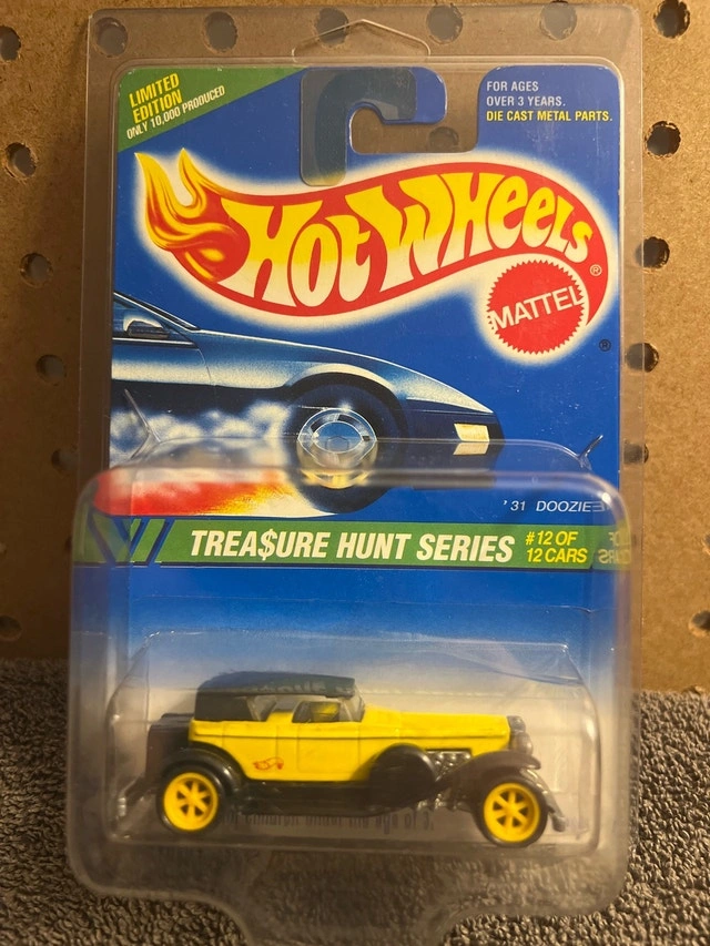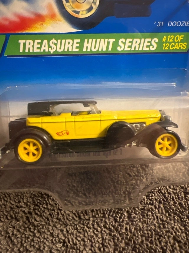 Relive the thrill of the chase with this 1995 Hot Wheels Treasure Hunt Series '31 Doozie, a rare and highly sought-after collectible die-cast car, number 12 of 12 in the Treasure Hunt series, still sealed in its original packaging. This Hot Wheels '31 Doozie is a must-have for collectors and enthusiasts alike. Don't miss your chance to own a piece of Hot Wheels history! If the ad is up, the '31 Doozie is still waiting for a new home.
