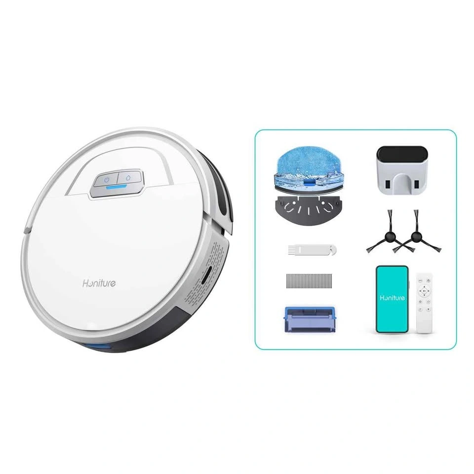 Keep your floors spotless with this sleek Honiture robot vacuum. Designed to glide effortlessly under furniture, it delivers powerful suction for dust, pet hair, and everyday messes. One-touch operation makes cleaning simple, while its slim, modern design looks great in any home.
