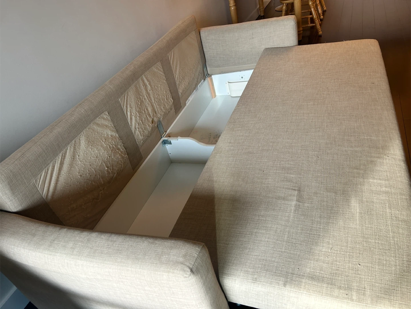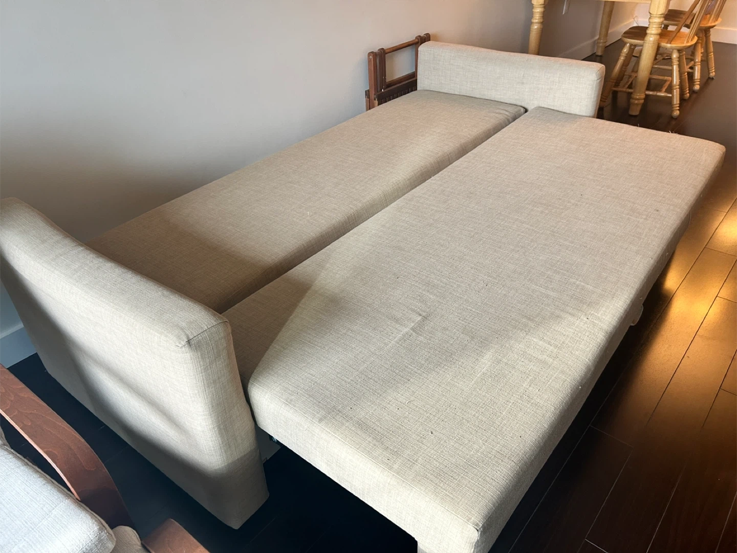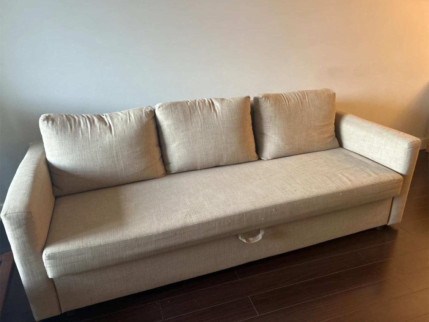 Selling an IKEA Friheten sleeper sofa in beige. It's in great shape and ready for a new home. Perfect for small spaces or guest rooms!