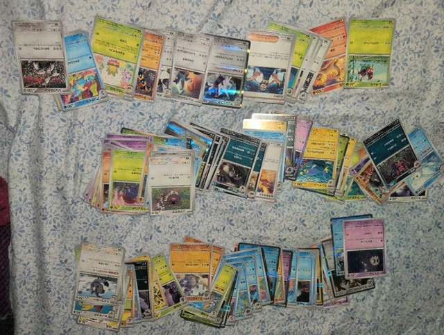 Selling a collection of Japanese Pokemon cards. These cards are in used condition, showing some signs of wear, but are otherwise well-preserved. Perfect for collectors or players looking to expand their collection with unique, Japanese-exclusive cards. Unfortunately, I'm not a Pokemon card expert, so I can't provide specific details on each card's rarity or value. What you see is what you get! Just a friendly reminder that if the ad is up, the cards are still available and waiting for a new home.